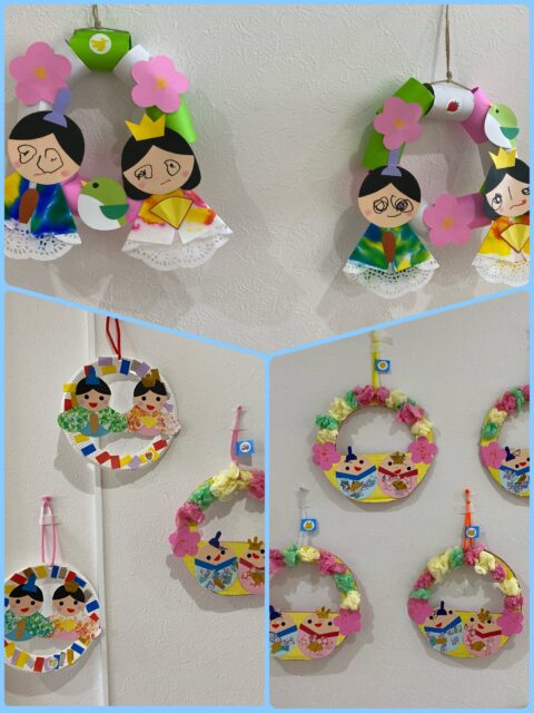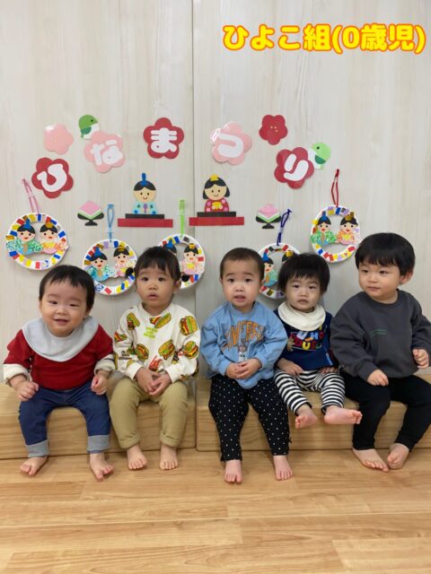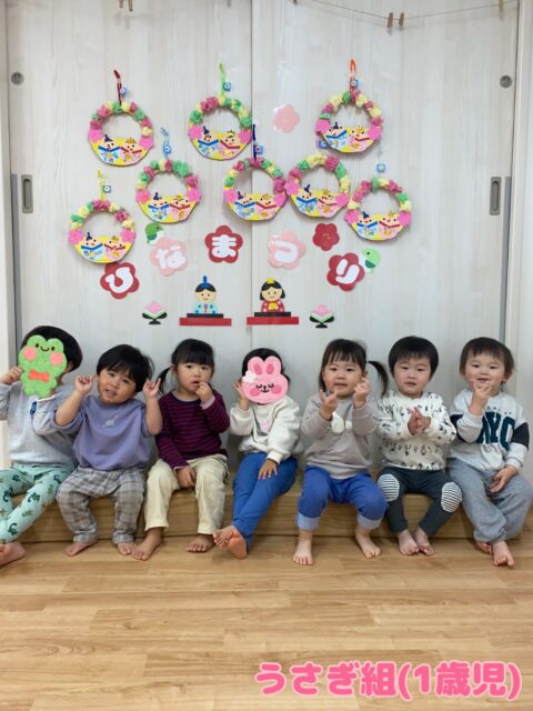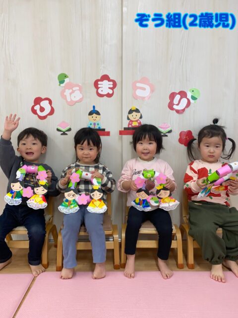 いつも廊下にあった雛飾りが保育室にあるのを見ると「なんで、ここにあるの?」と不思議そうなお友達😊自分の作った作品を見つけて「あっ!」と喜んでいましたよ✨