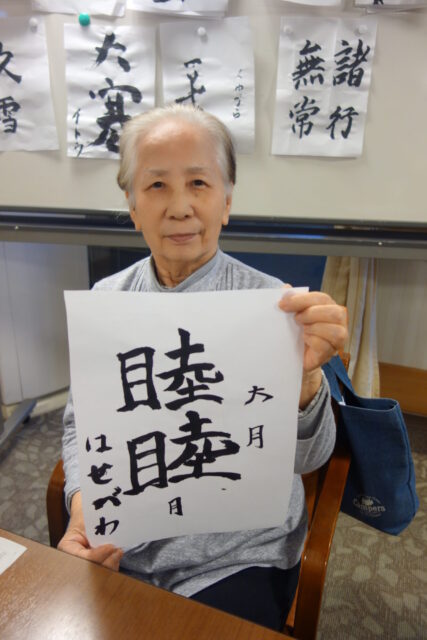 参加された入居者の皆様は新春にちなんだ文字を半紙に書いておられました。
