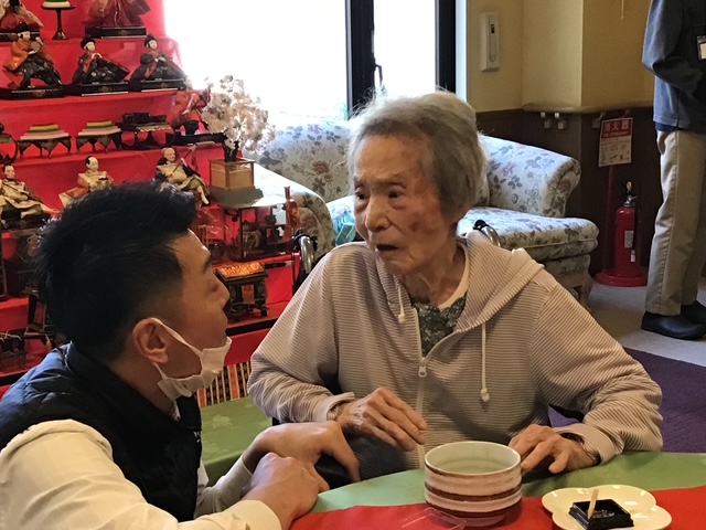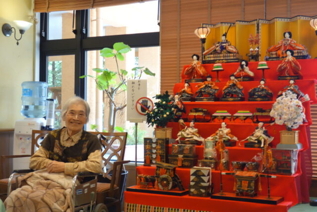 3月1日に当施設ではフロントに飾ってある、ひな人形を見ながらのお茶会を行いました。