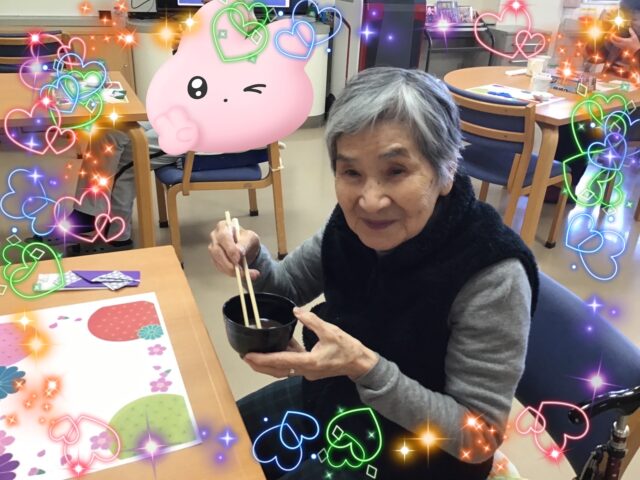1月11日鏡開きの日、ケアハウスでは小豆をいっぱい使った温かいぜんざいを振舞いました😍