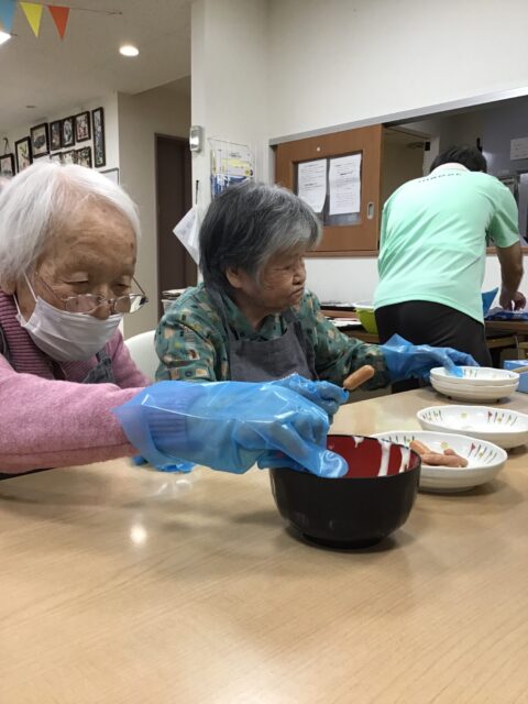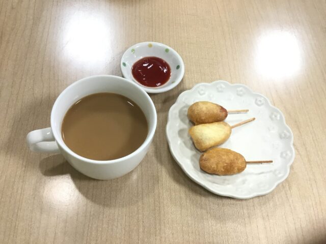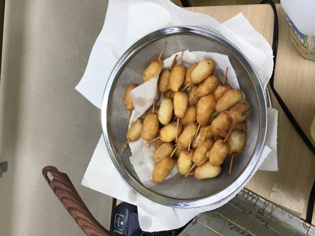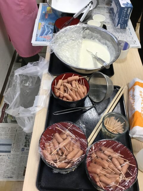 そうです!アメリカンドッグを作っていました~!😄😄😄