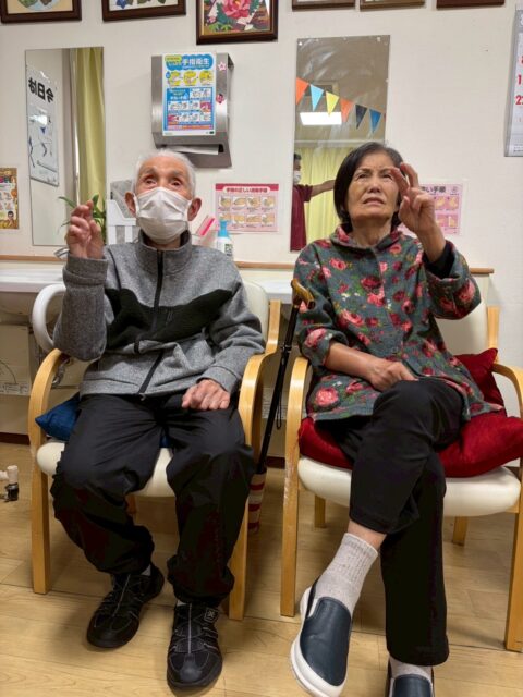 まずはじめに全員で座った状態のまま手や足を使って体操をしました🪑