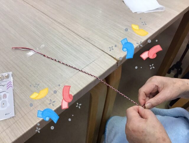 また、「この次はどの糸を動かすの~😅!」「ほどけてきた~!😲💦」など、職員とはしゃぎながら作られている方もいました!!😊