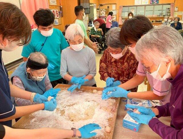 出来立てのお餅は手際よく、皆さんで丸めていきます💨💨