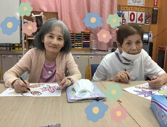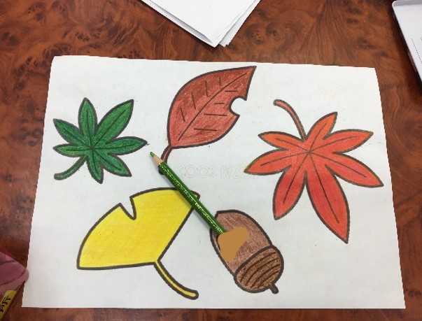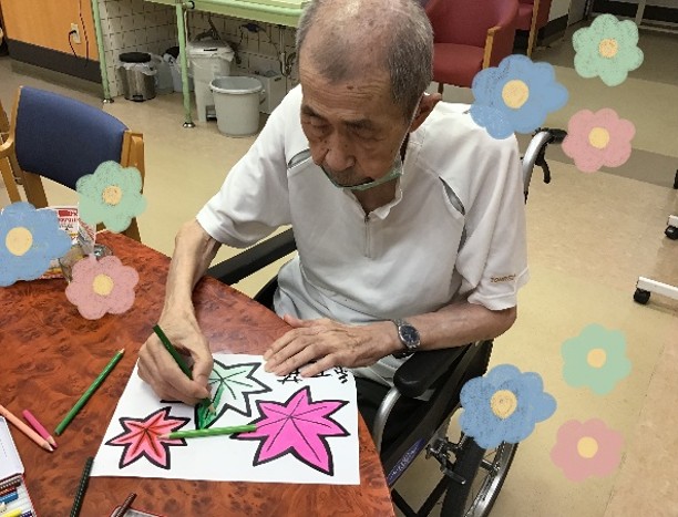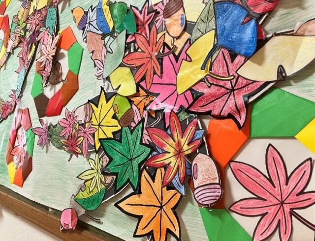 『もみじ』と『いちょう』を色とりどりに塗っていただいて、