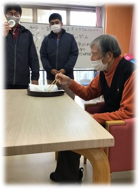 お手玉を豆に見立てて、皆さまに鬼退治をしていただきました😊😊😊