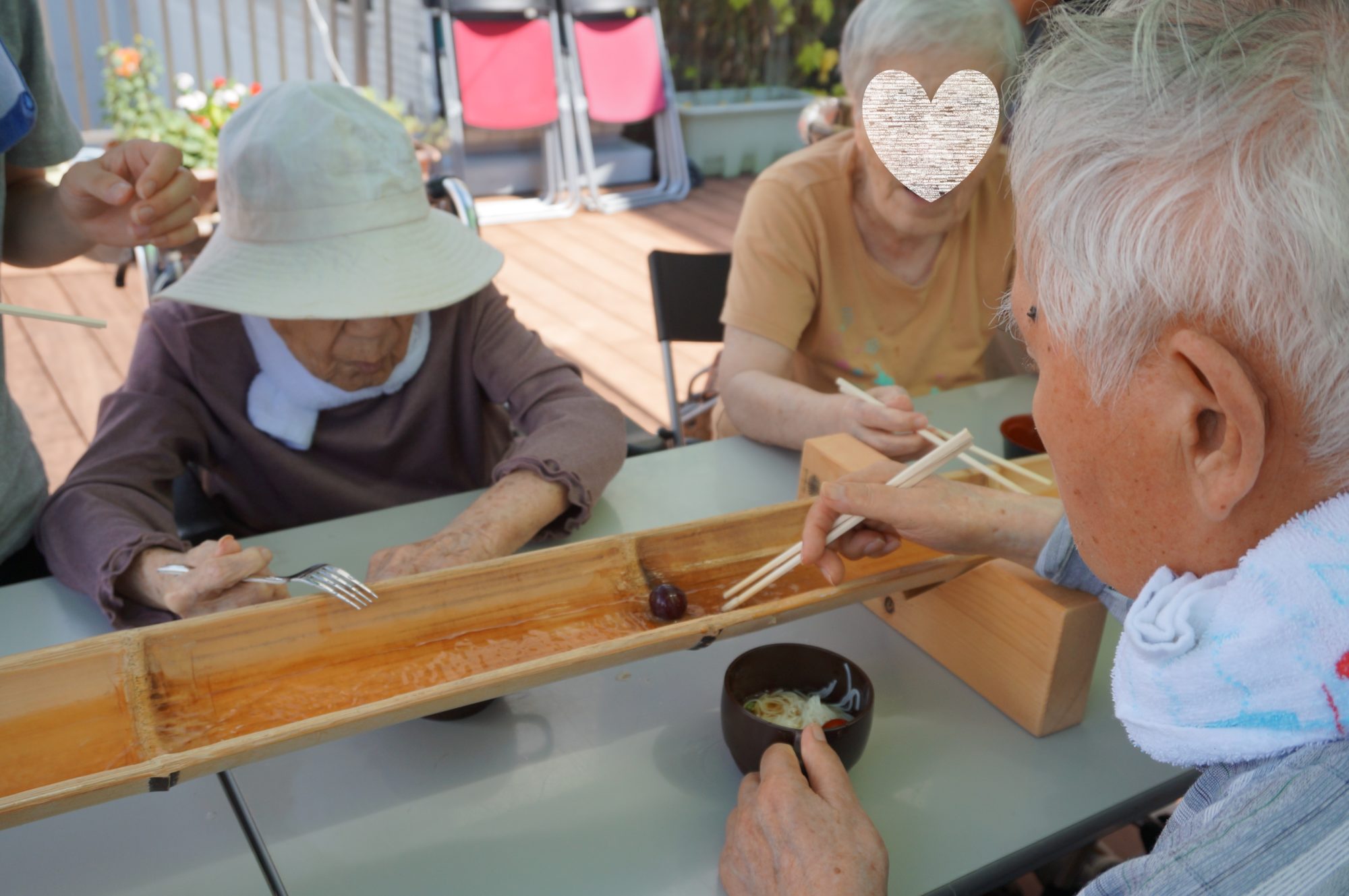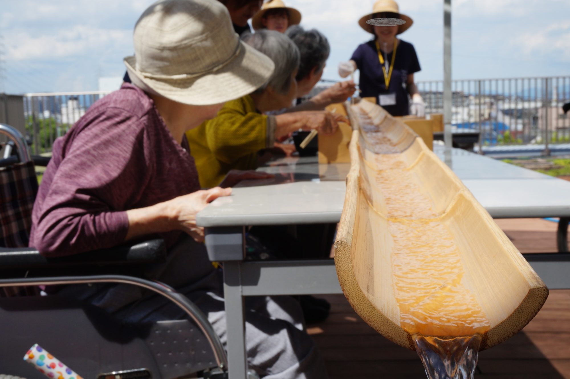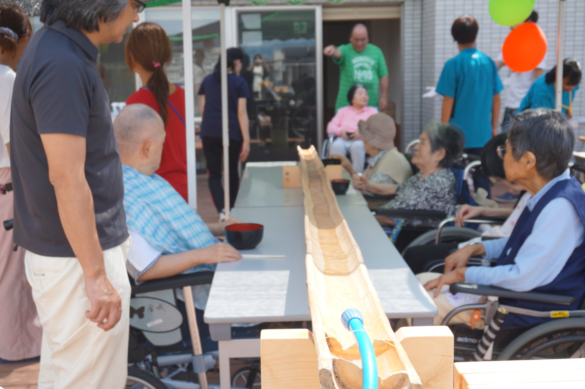 (9/4) 今日のおやつは流しそうめん☆ - 日の出医療福祉グループ