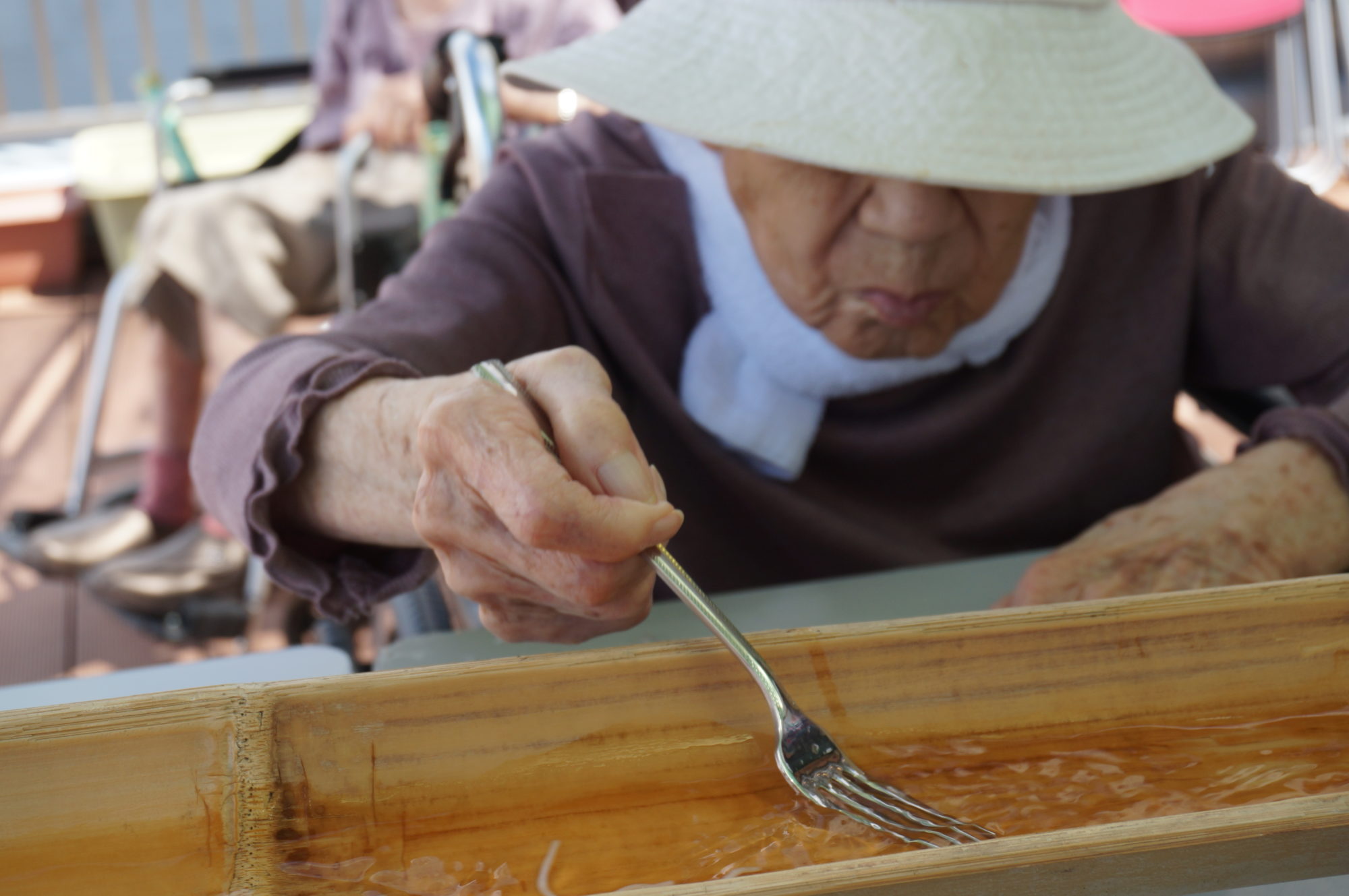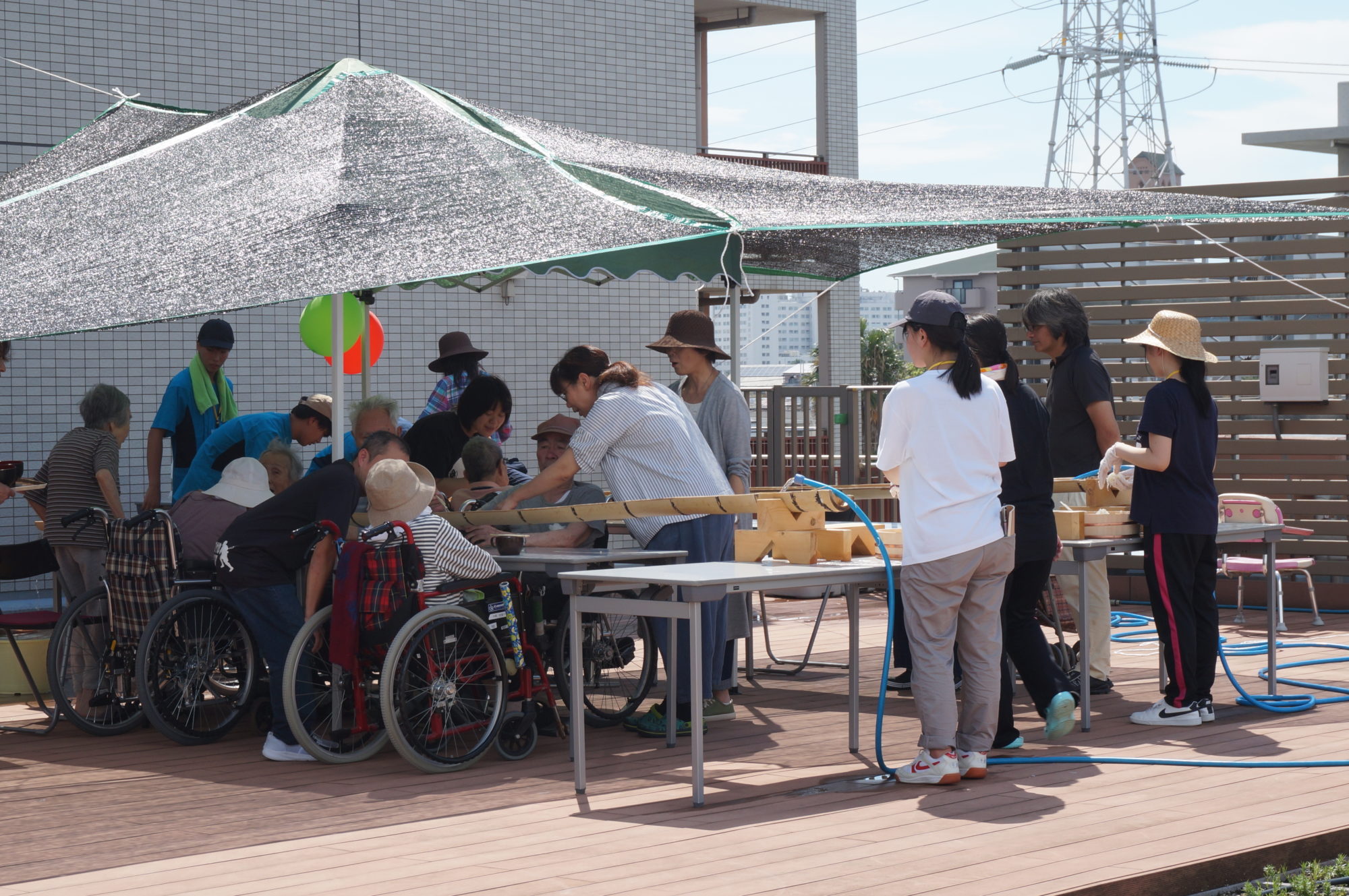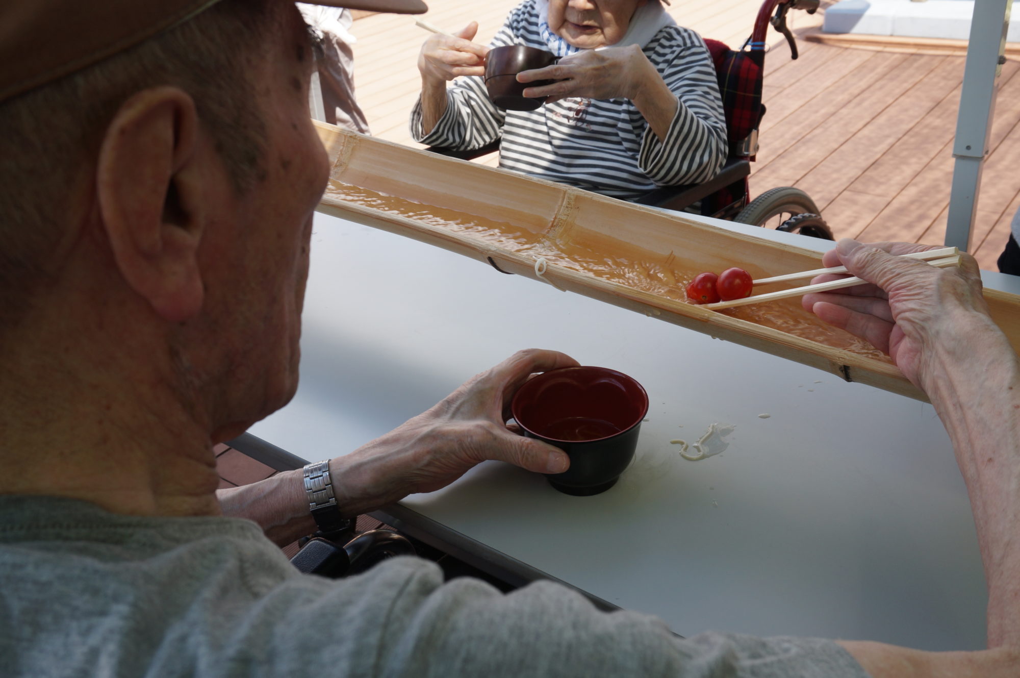(9/4) 今日のおやつは流しそうめん☆ - 日の出医療福祉グループ