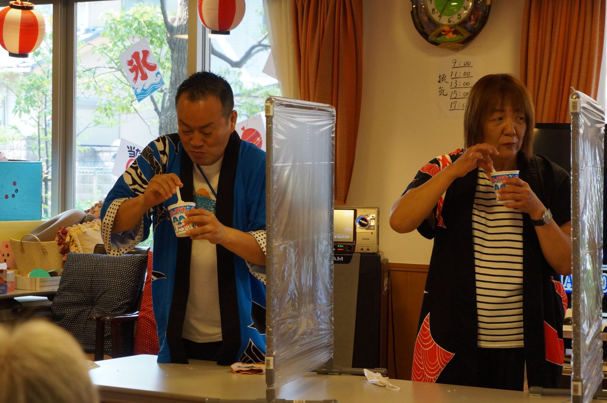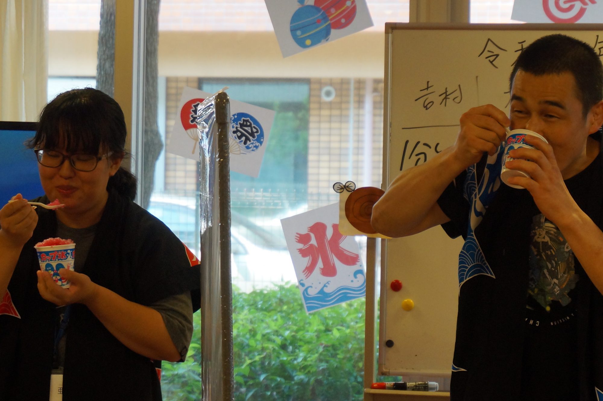 利用者様が少しでも楽しく、涼を感じていただけるように内容は盆踊りとかき氷に決定(^_-)-☆