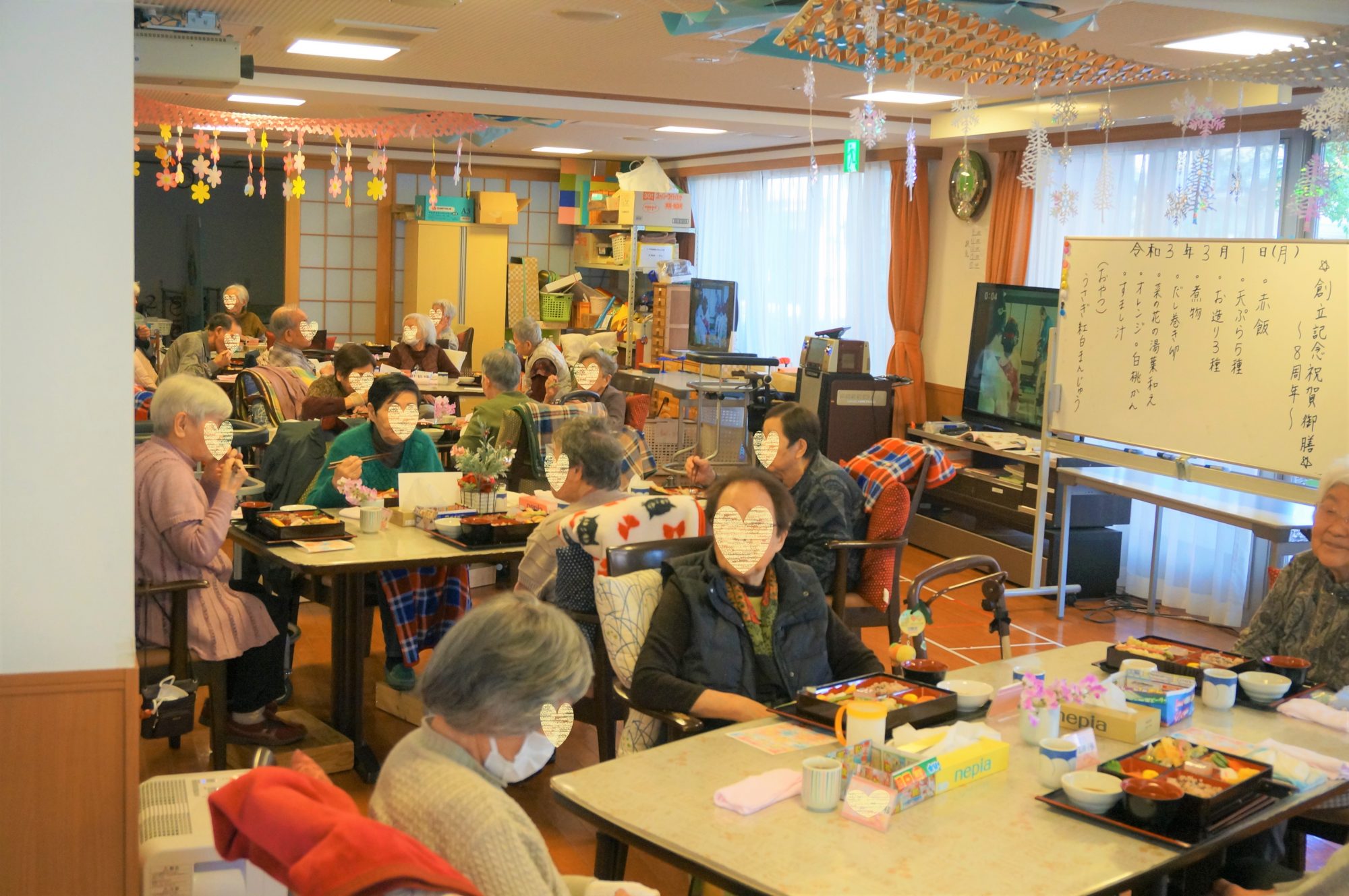 お昼には8周年記念御膳と紅白饅頭が振る舞われ
