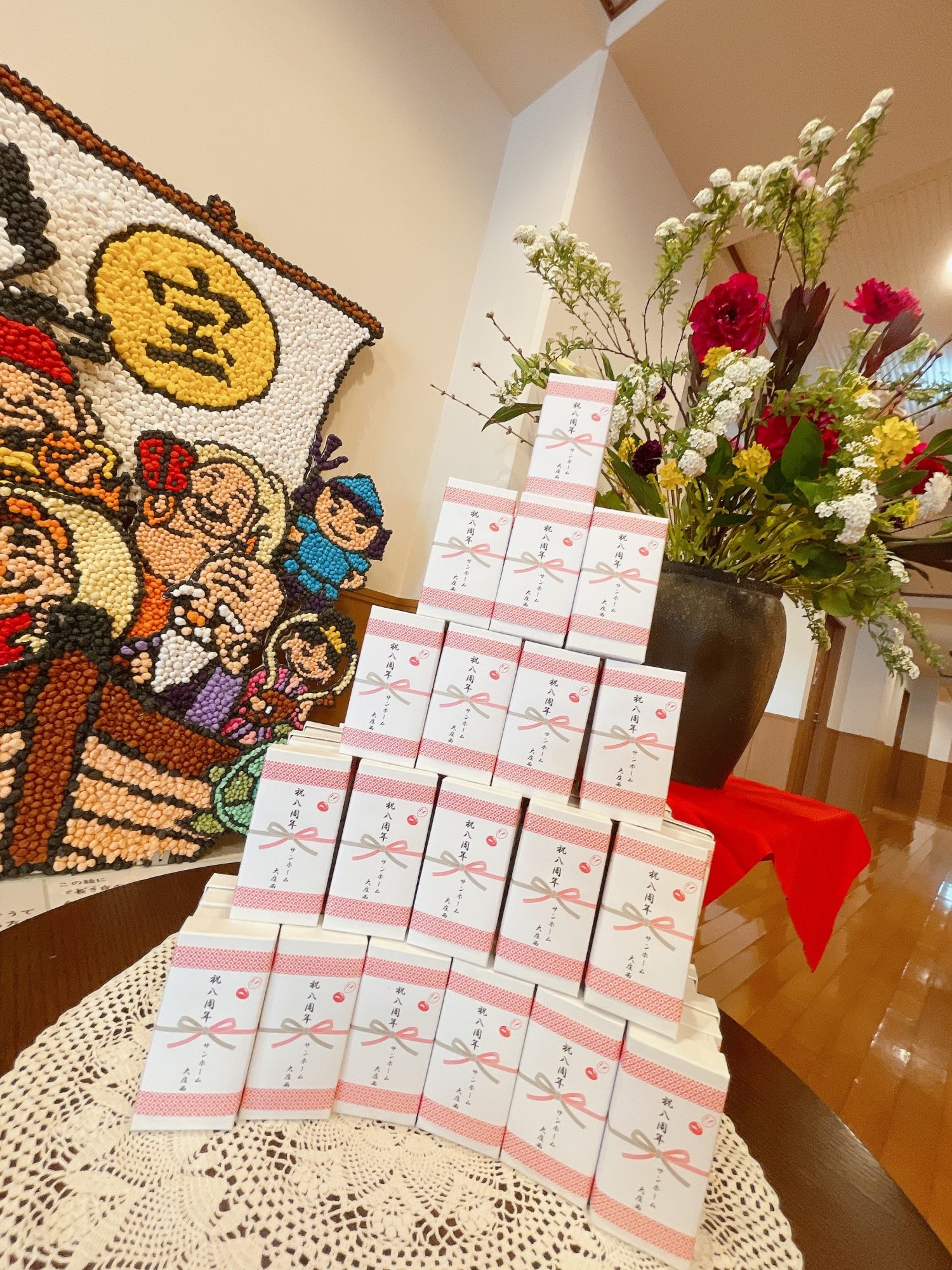 平田流生け花をメインに8周年記念、紅白饅頭タワーが建てられました~(笑)