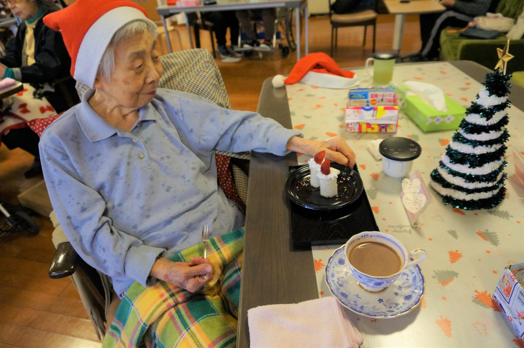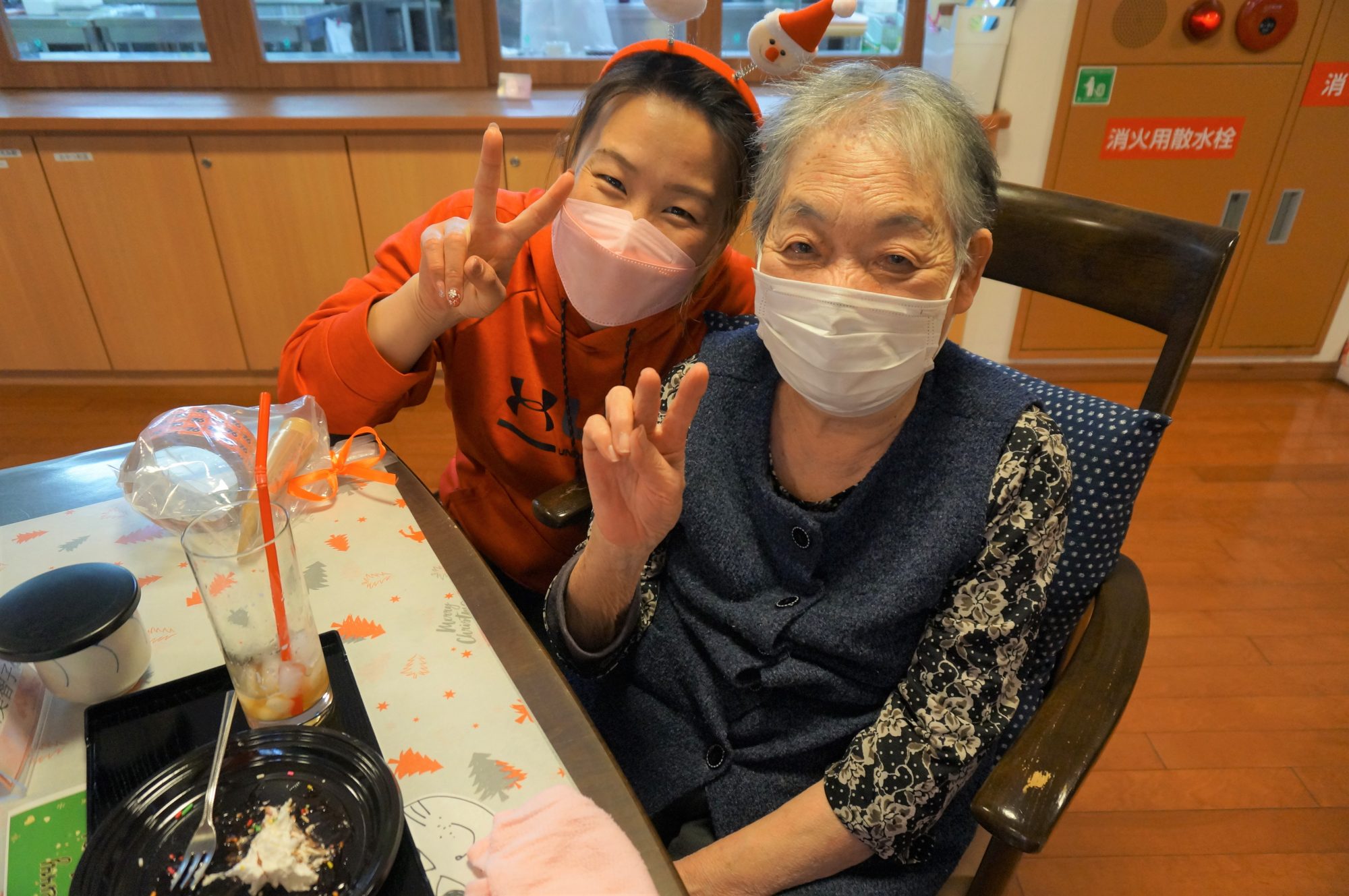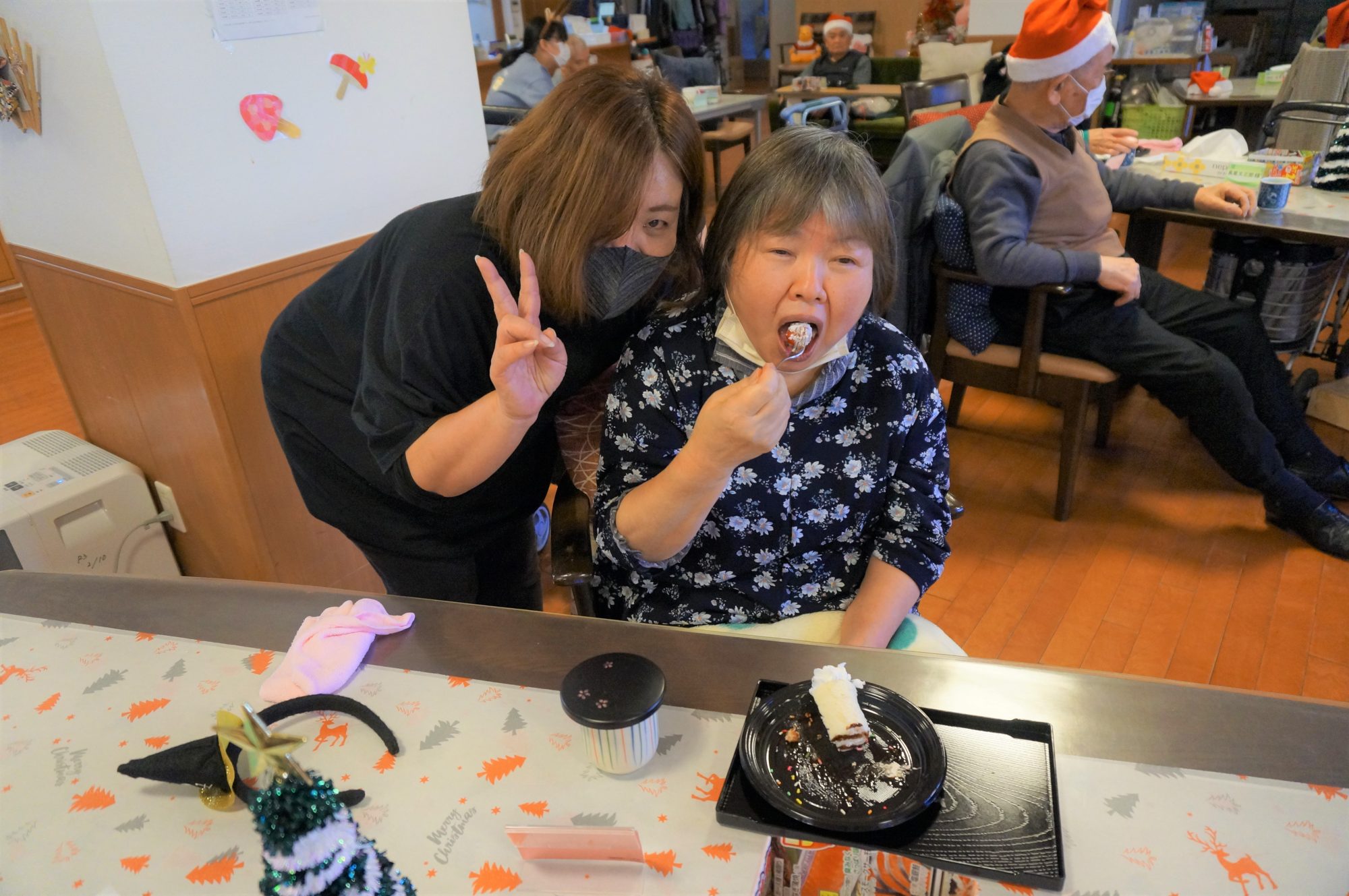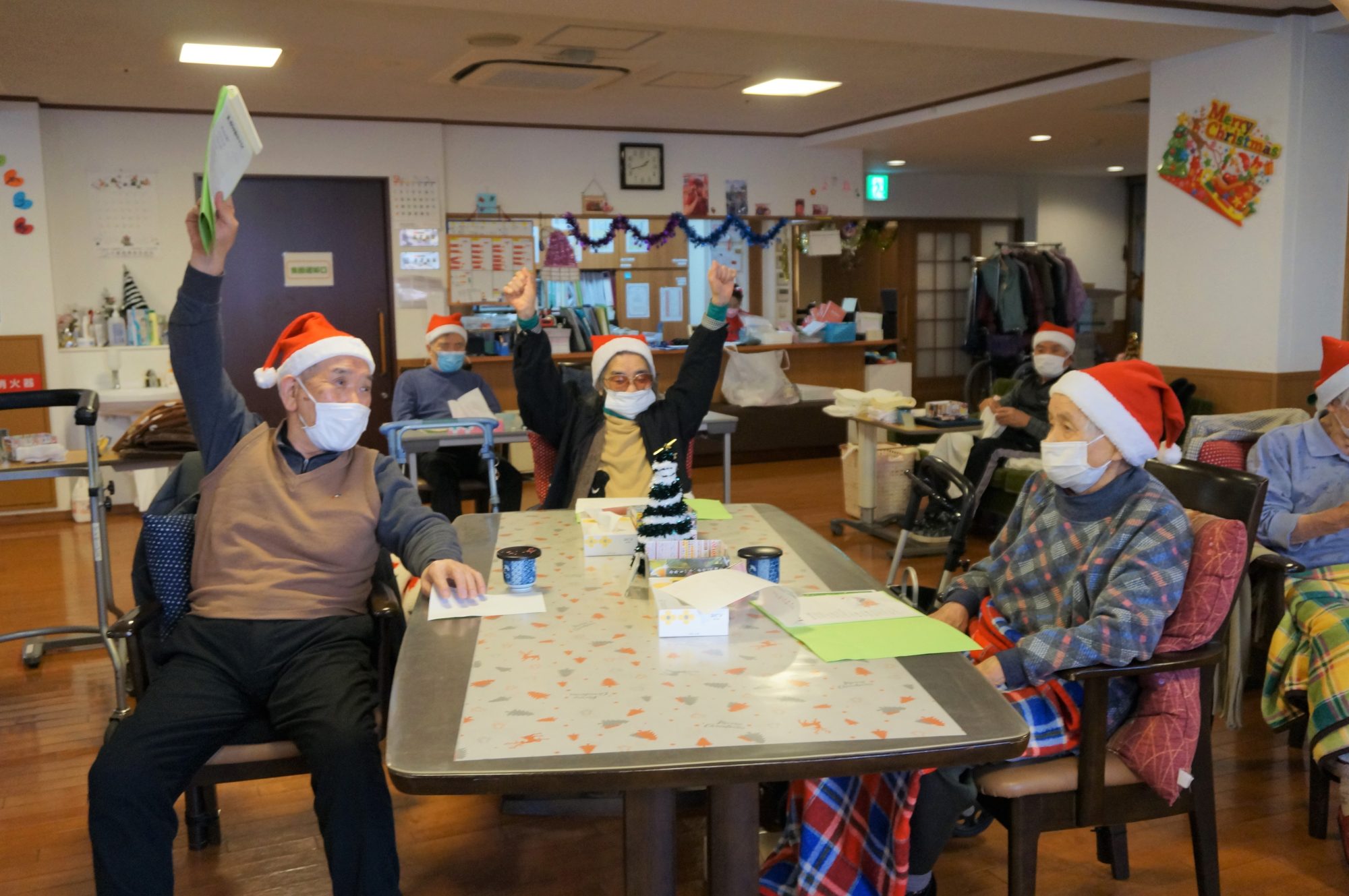 ご利用者様もサンタの衣装を身に着け