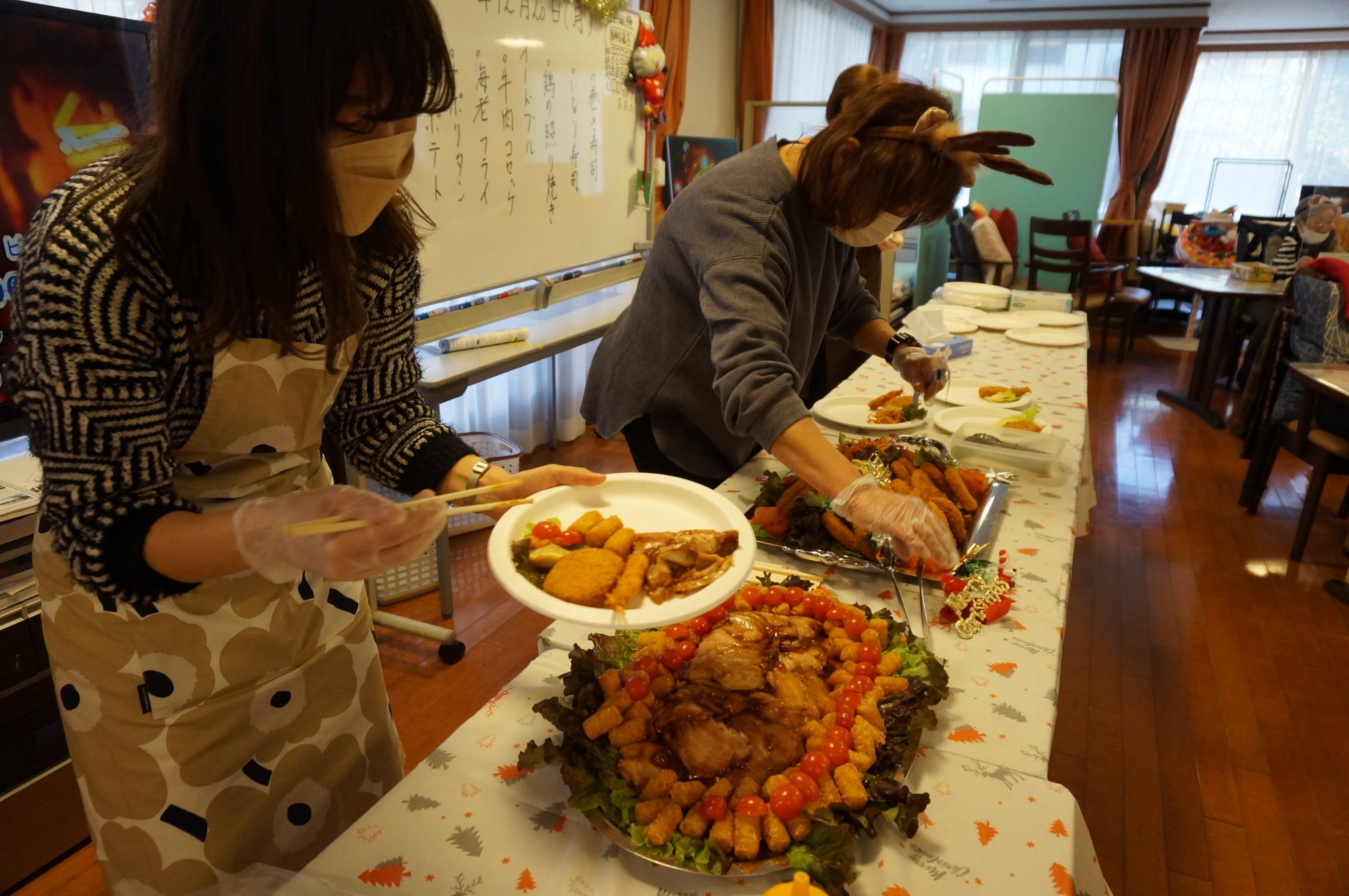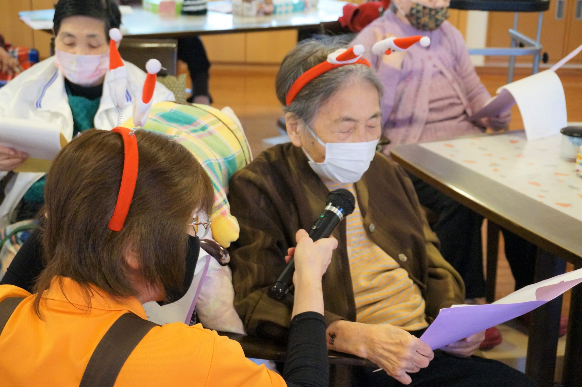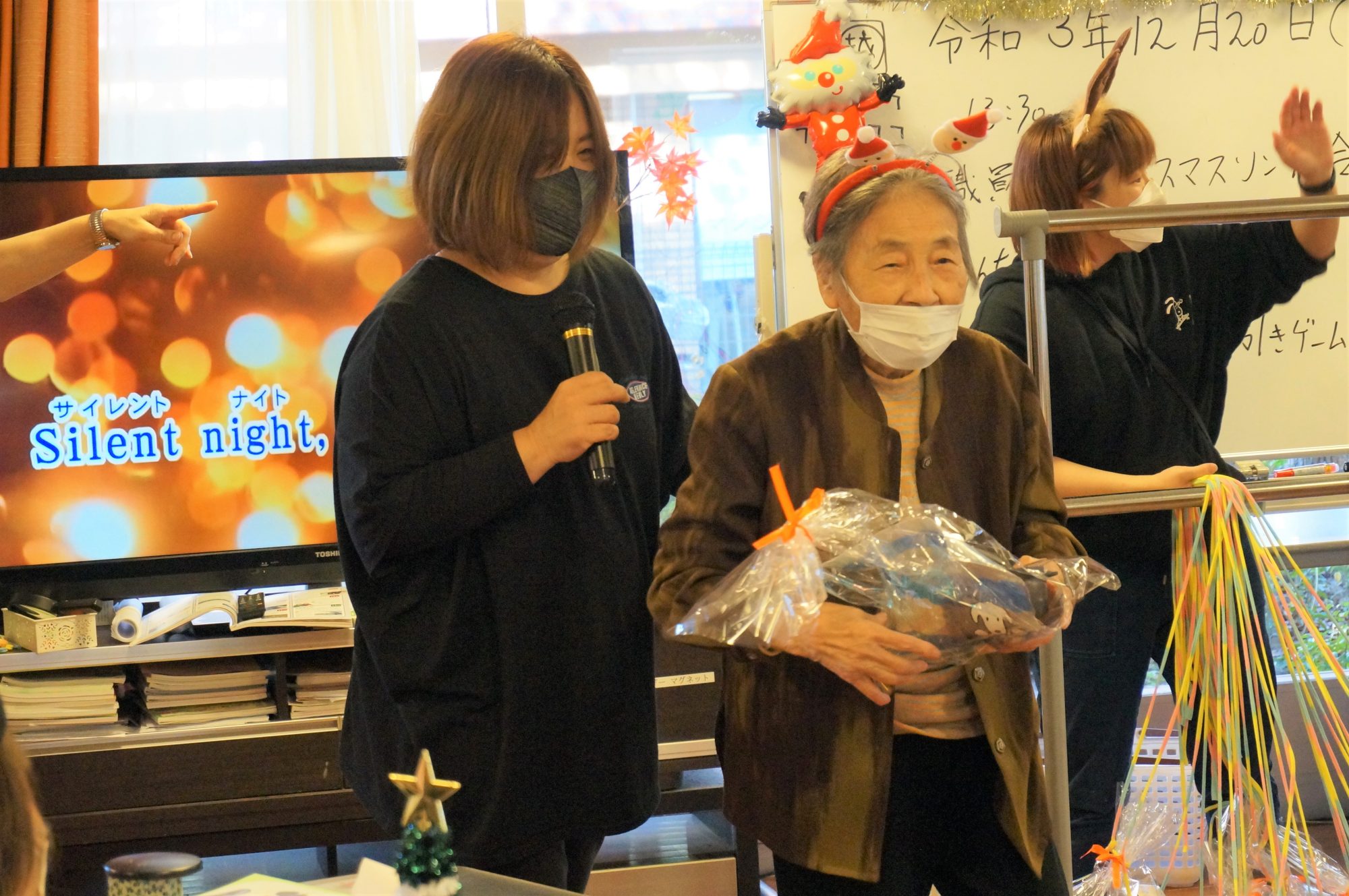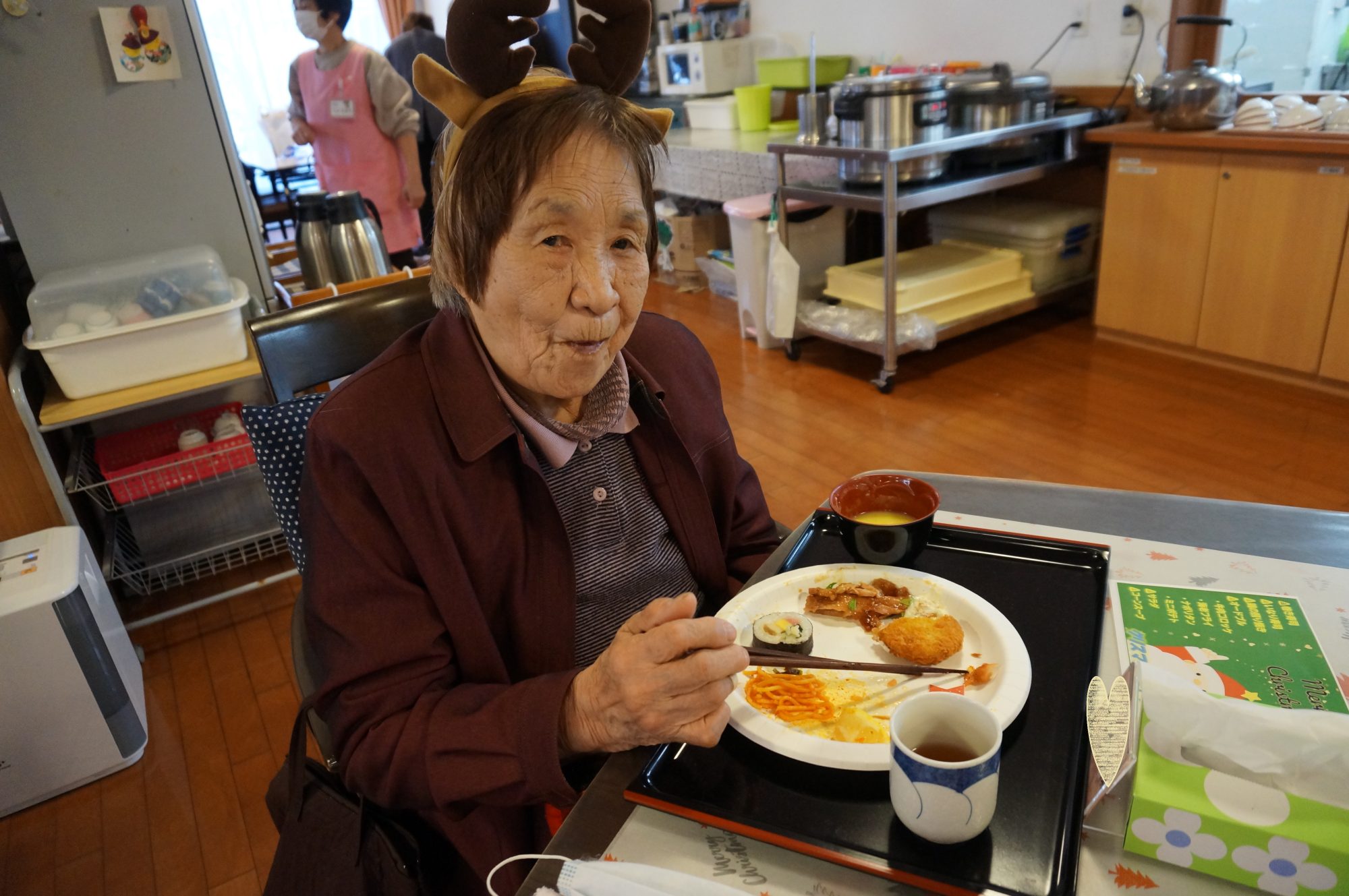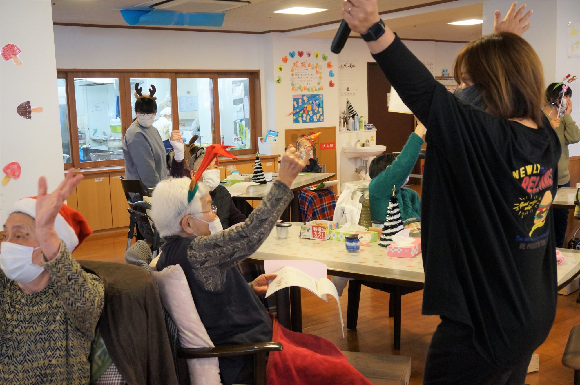 ご利用者様もサンタの衣装を身に着け