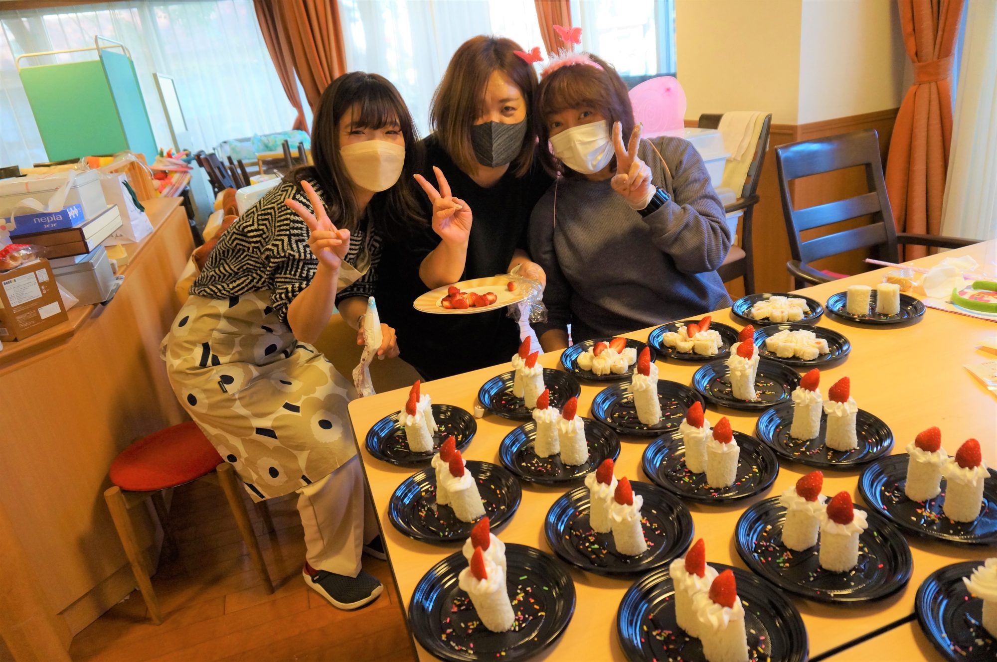 職員でデコレーションを完成させてお席までお届けします( *´艸`)☆