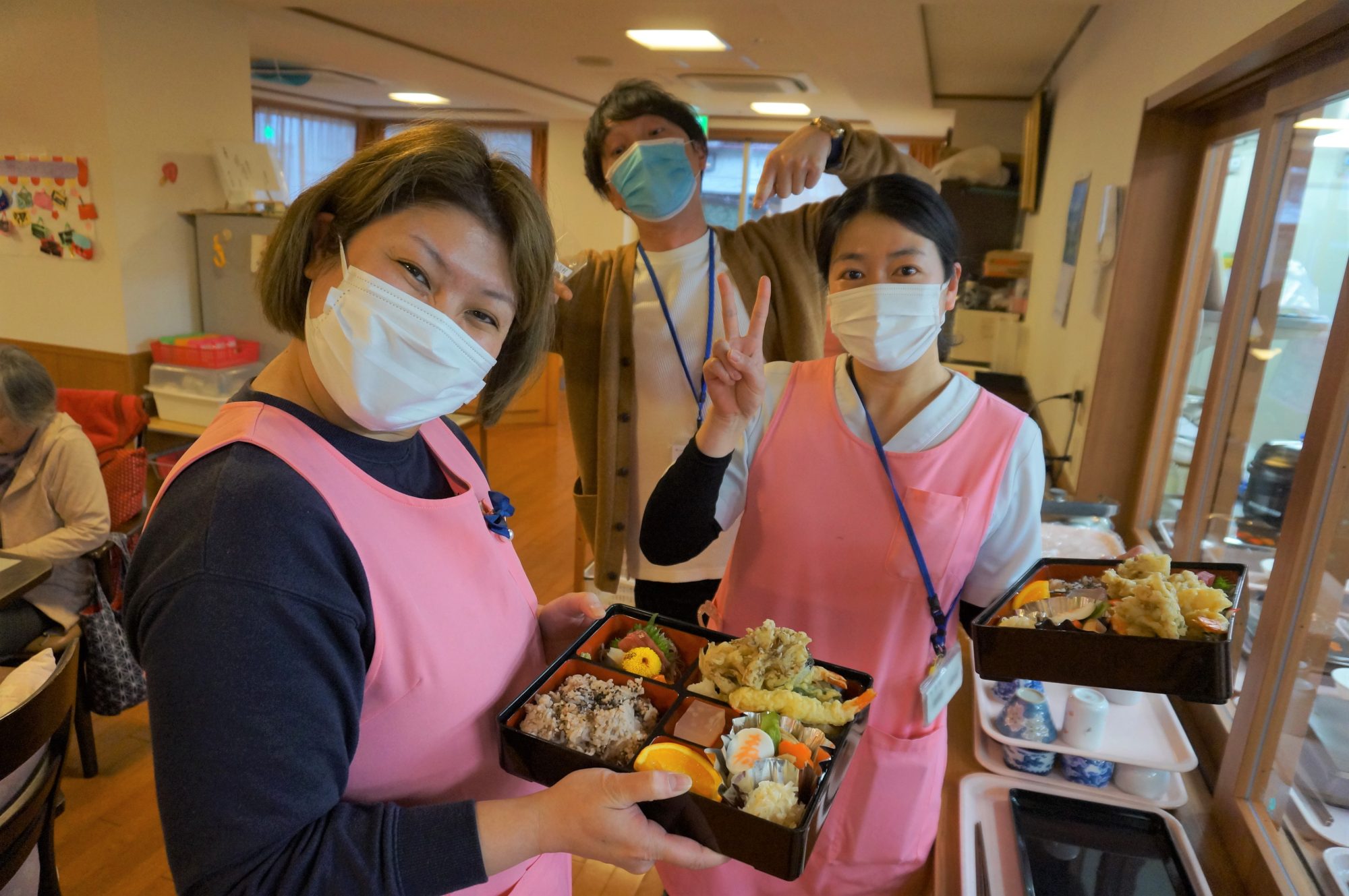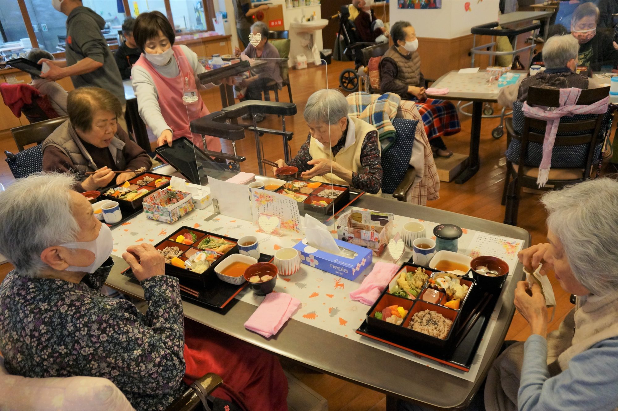 ご利用者様にお食事がいきわたったのを確認!!!