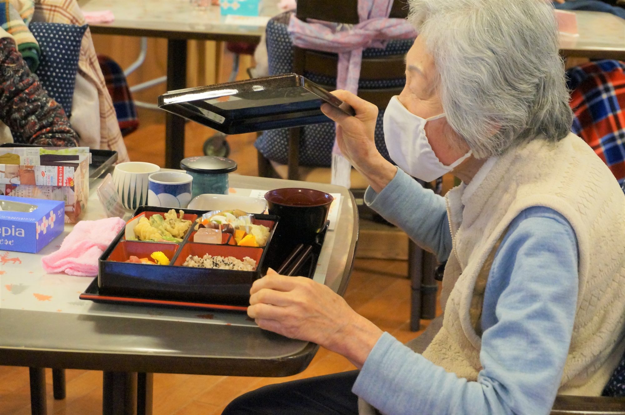 ご利用者様のお手元に御膳が運ばれると