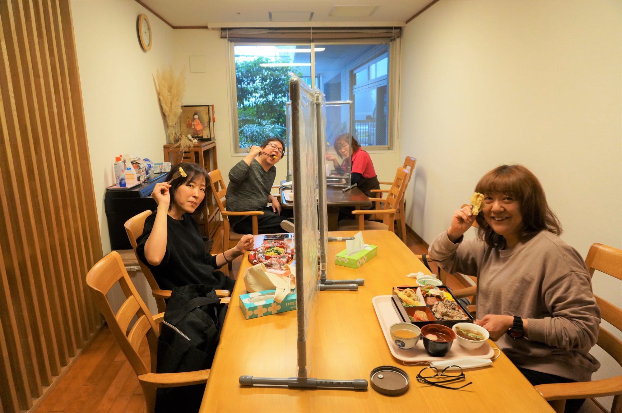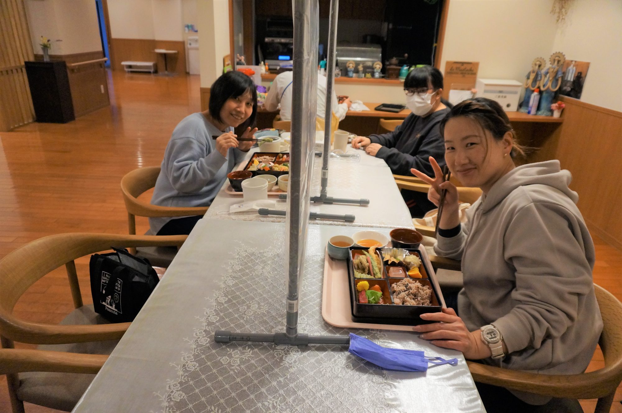 当然、職員も感染対策をして黙食です♫
