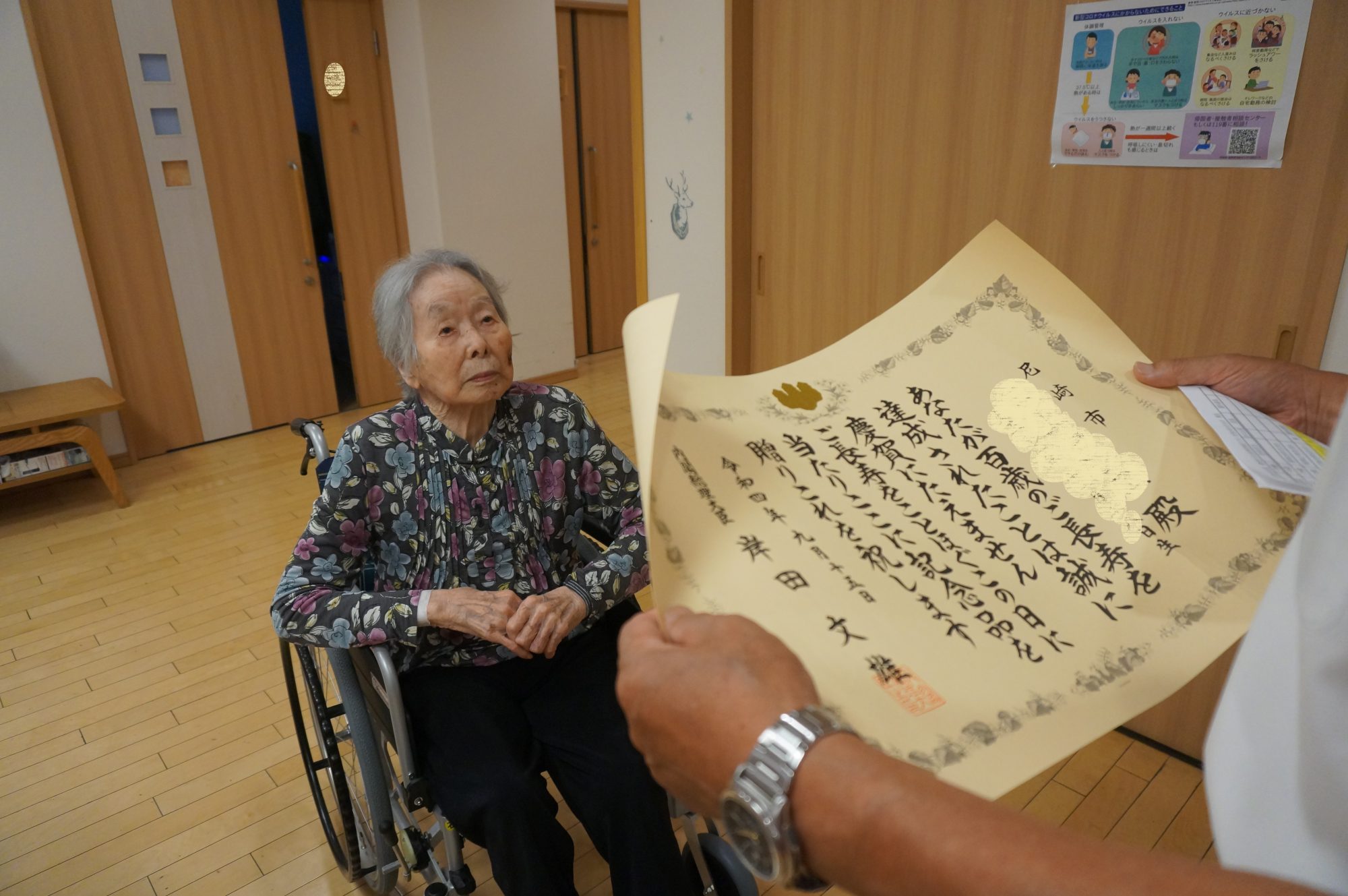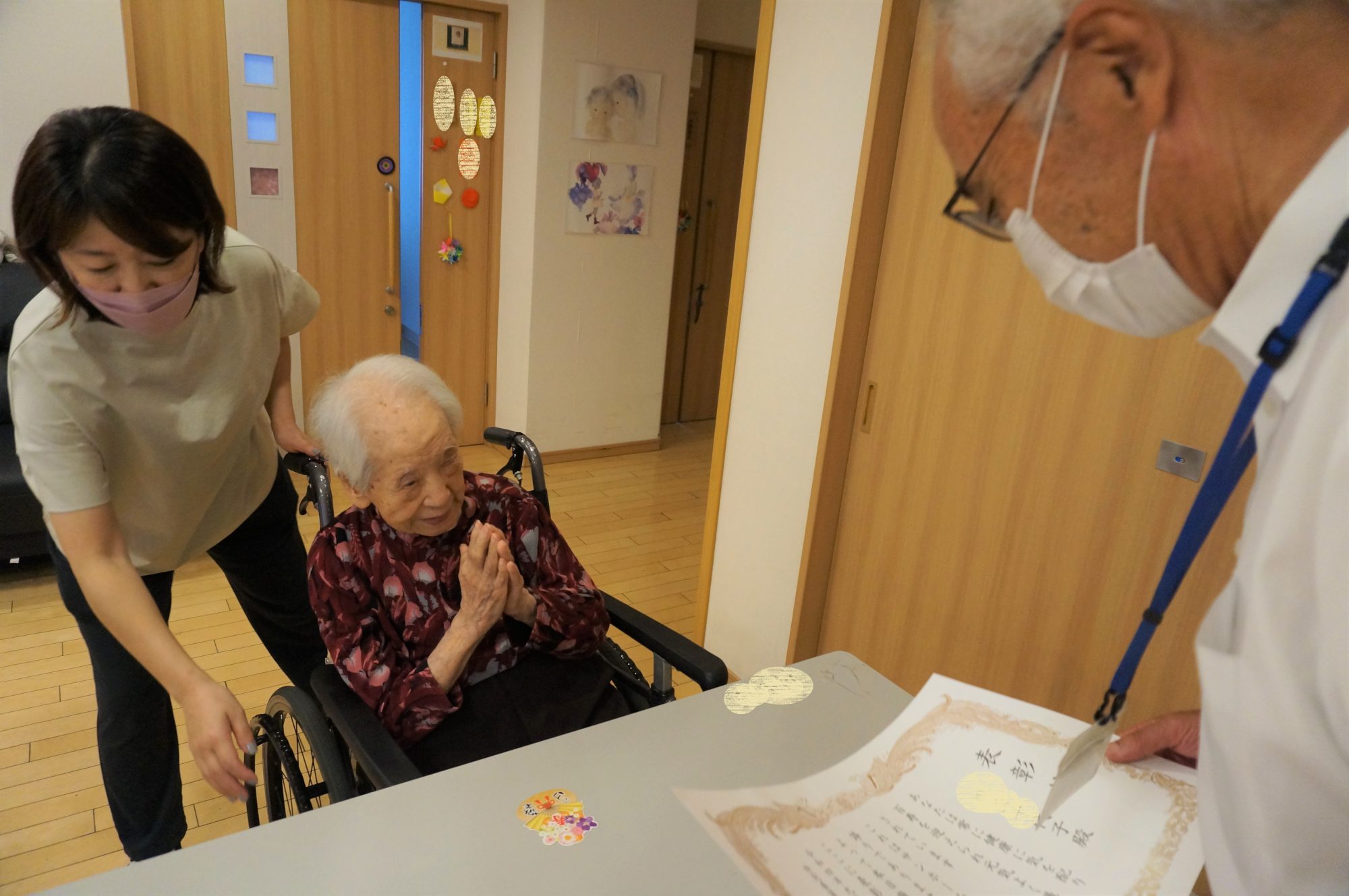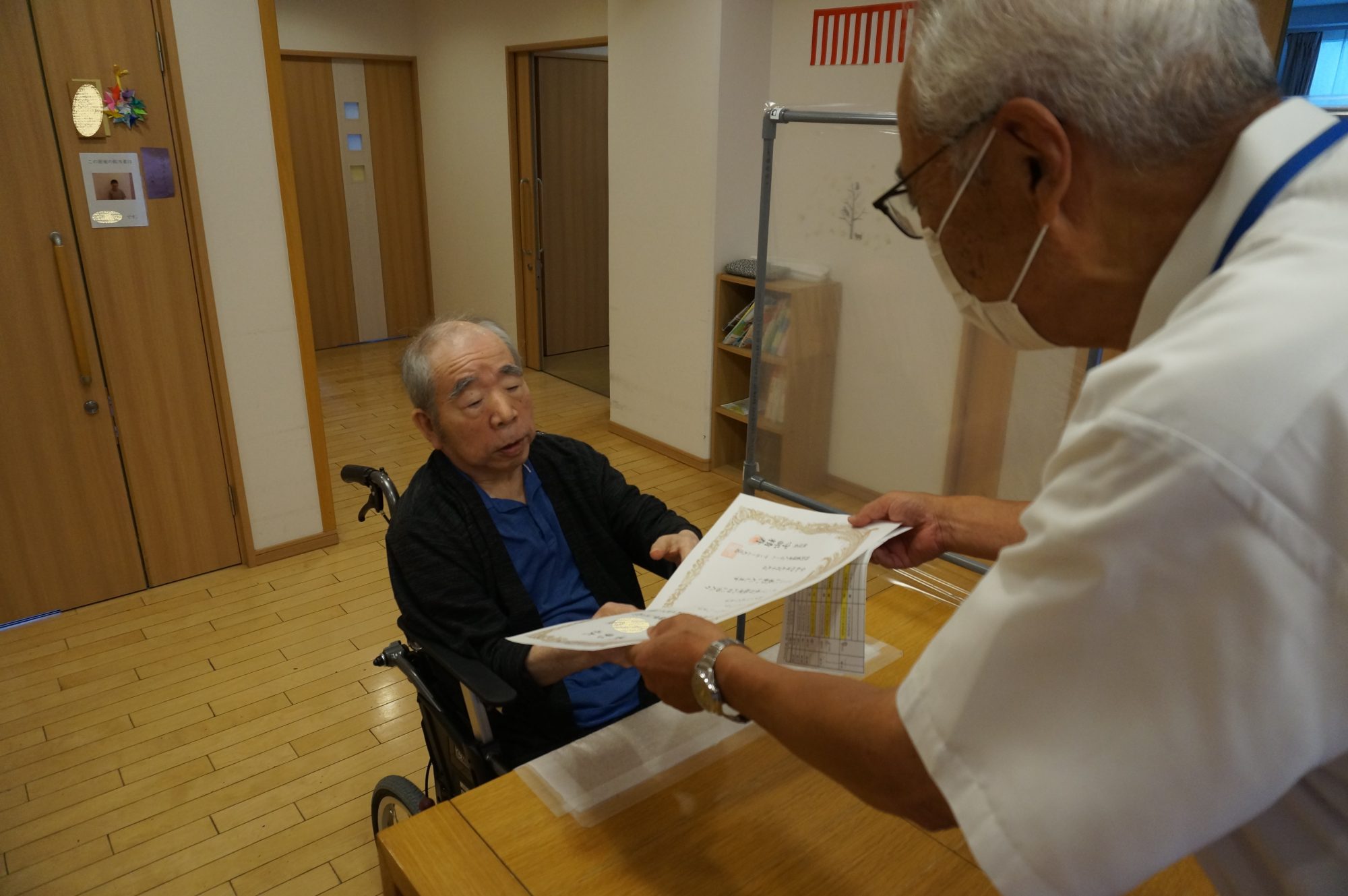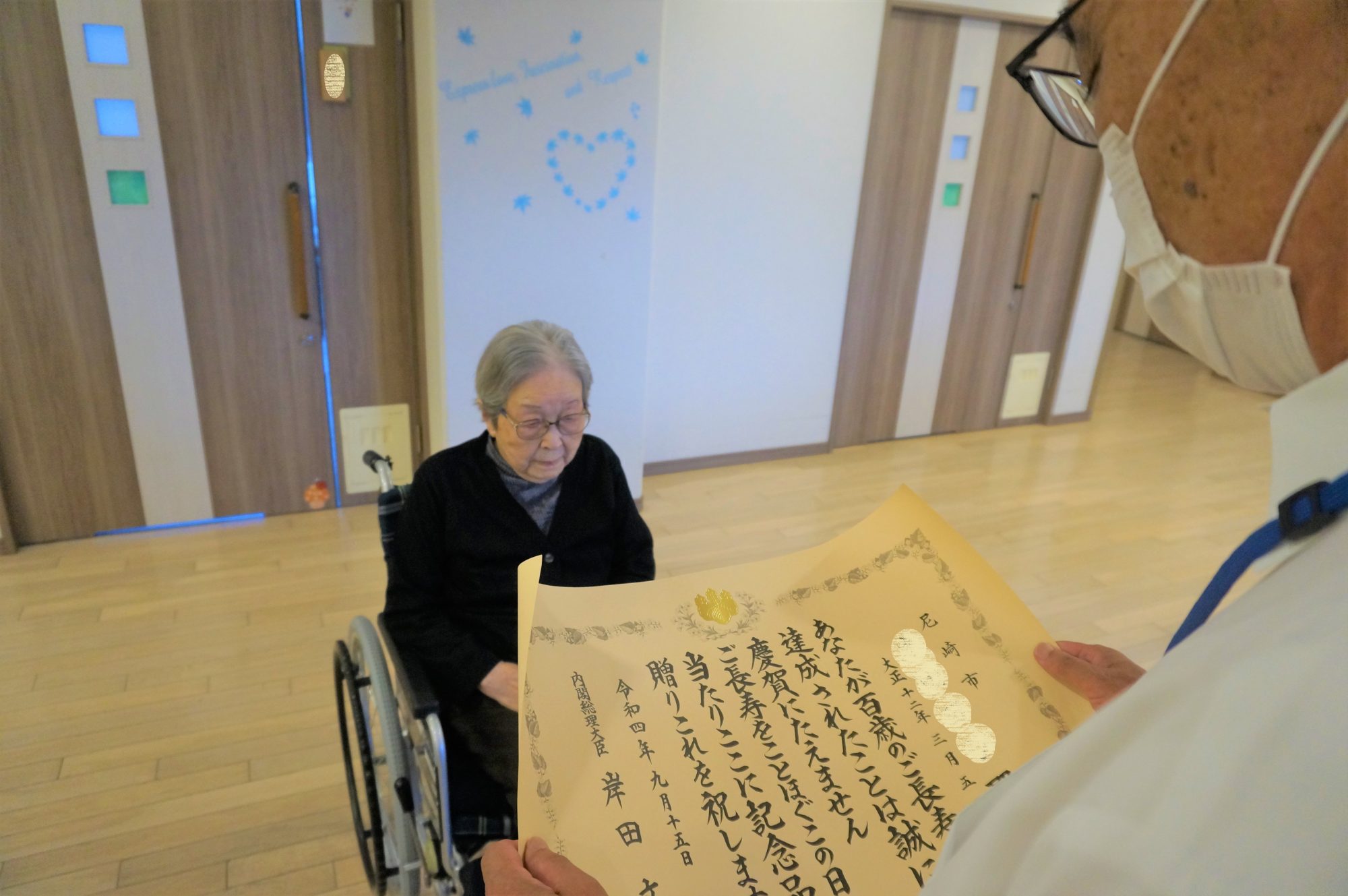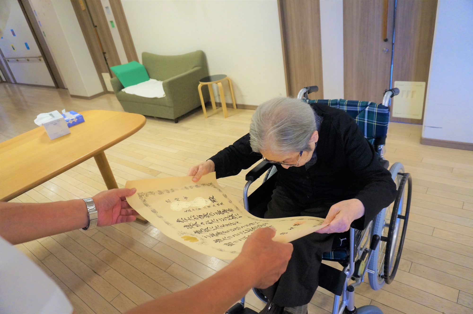厳かな気持ちで内閣総理大臣からの表彰状を受け取られるご利用者様(`・ω・) ✨