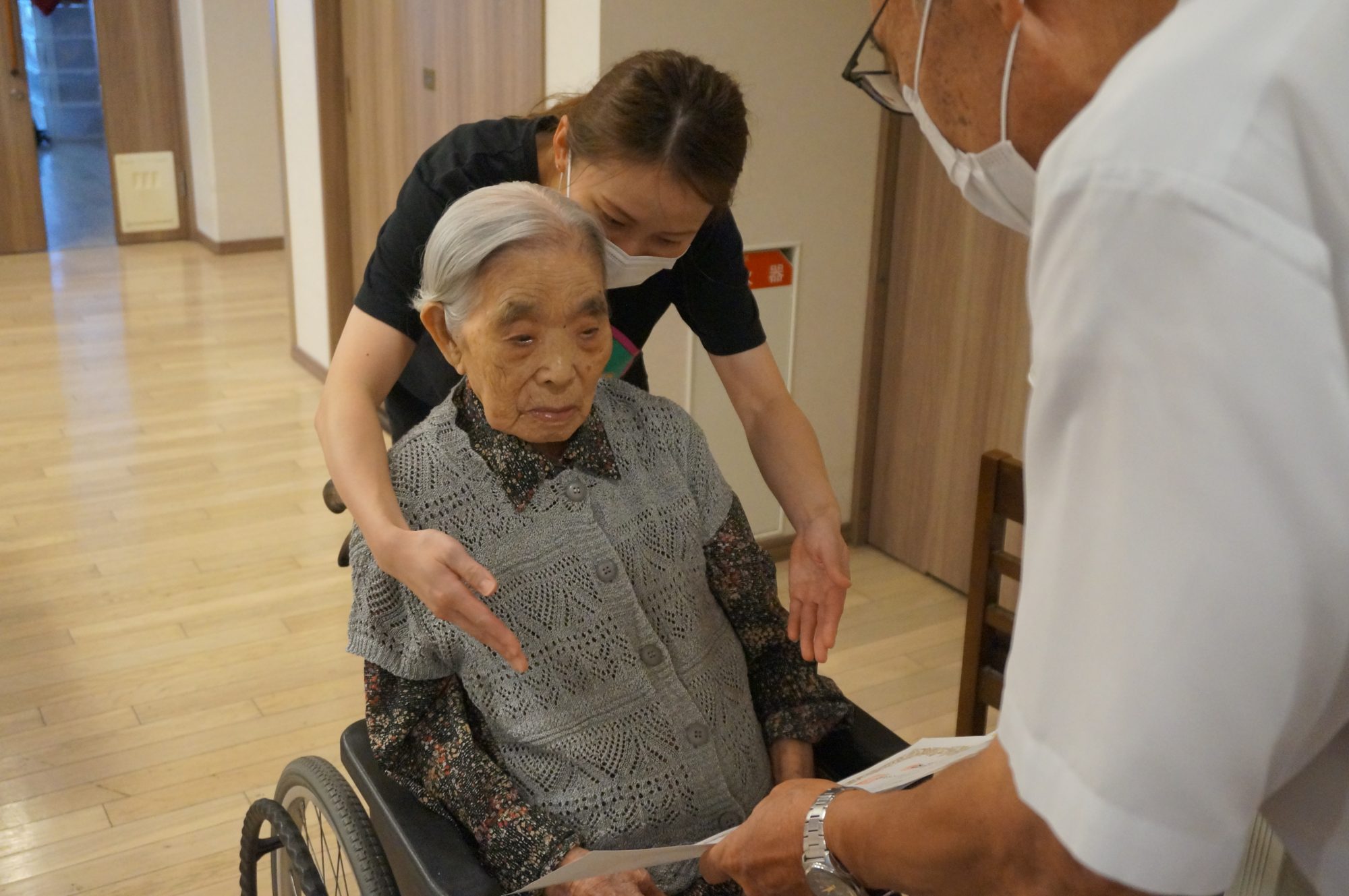しっかりとお話を聞かれ100歳のお祝いをとっても喜んでいらっしゃいました♫♫