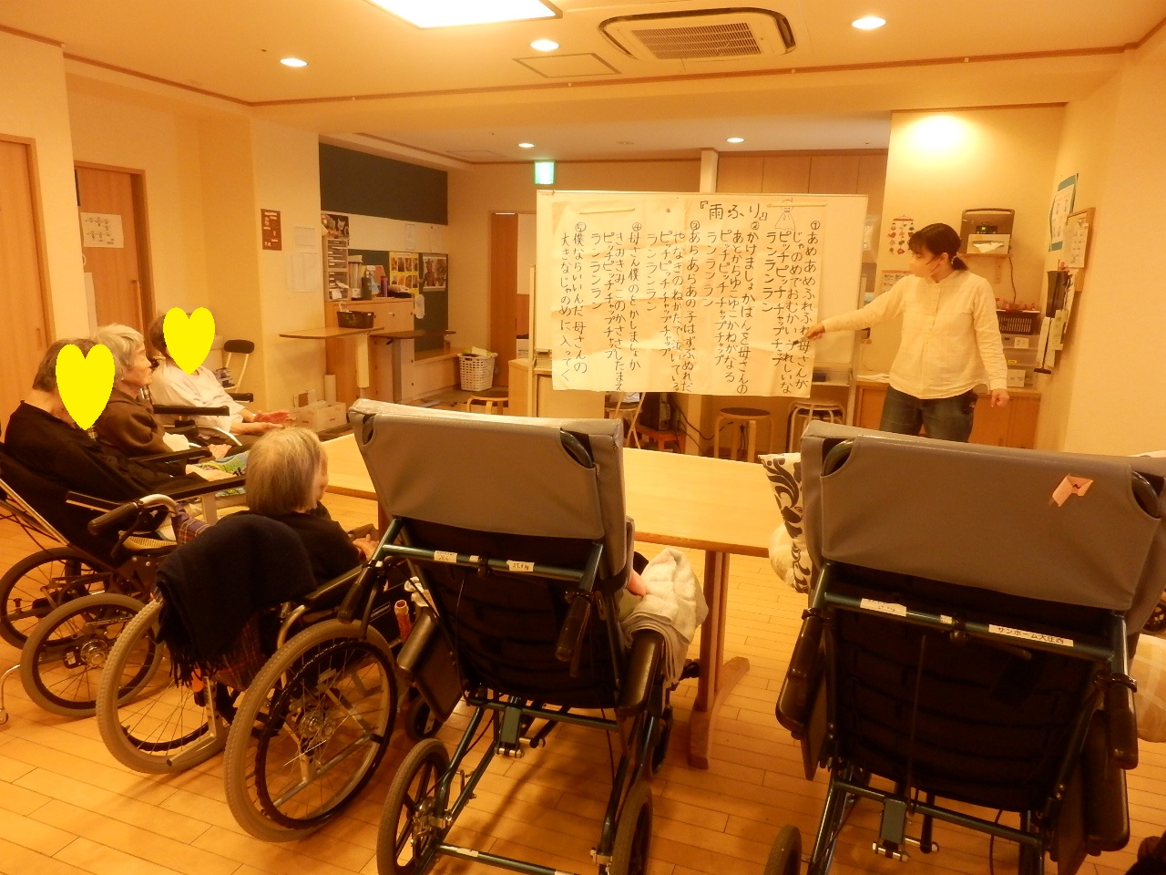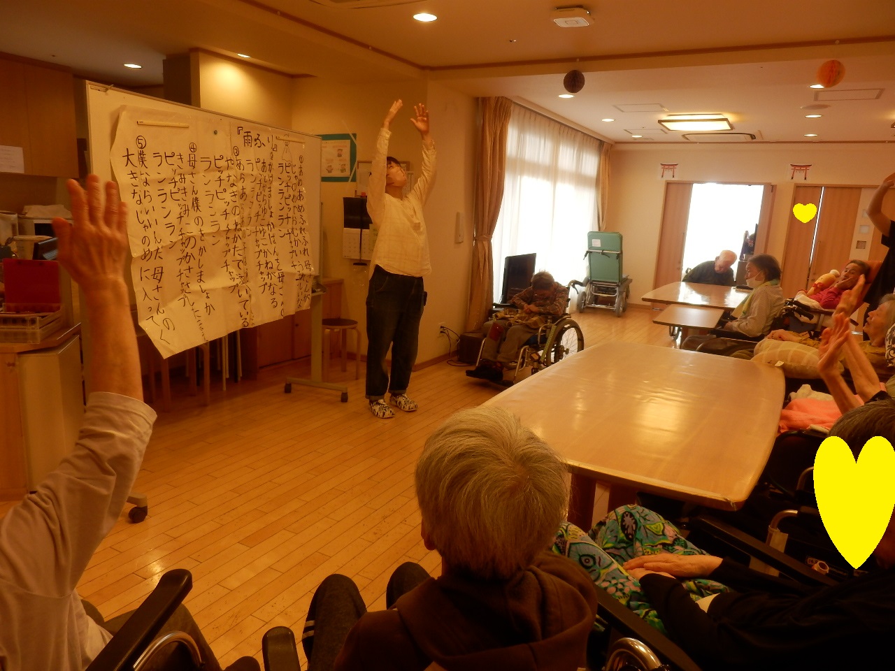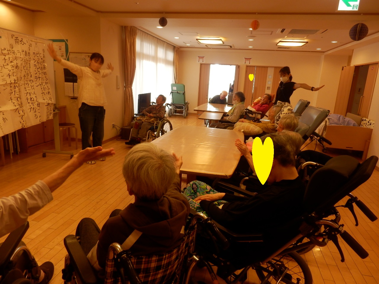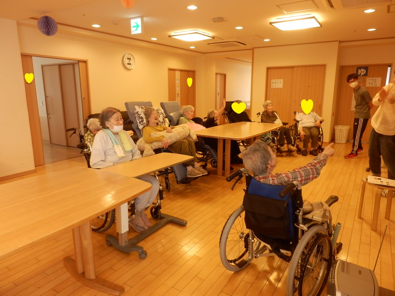 集団体操は週に1回、理学療法士がユニットに来られて2ユニット合同で行います。