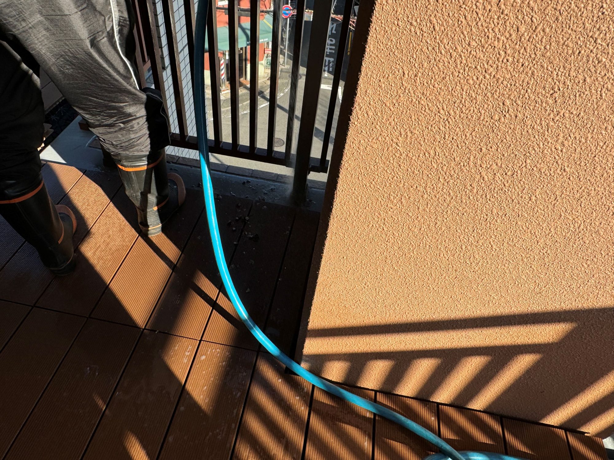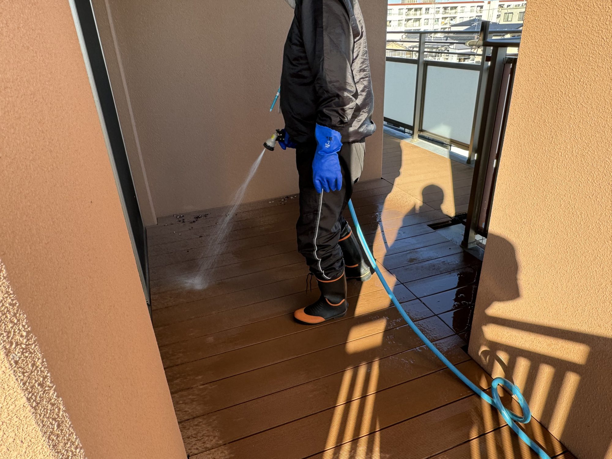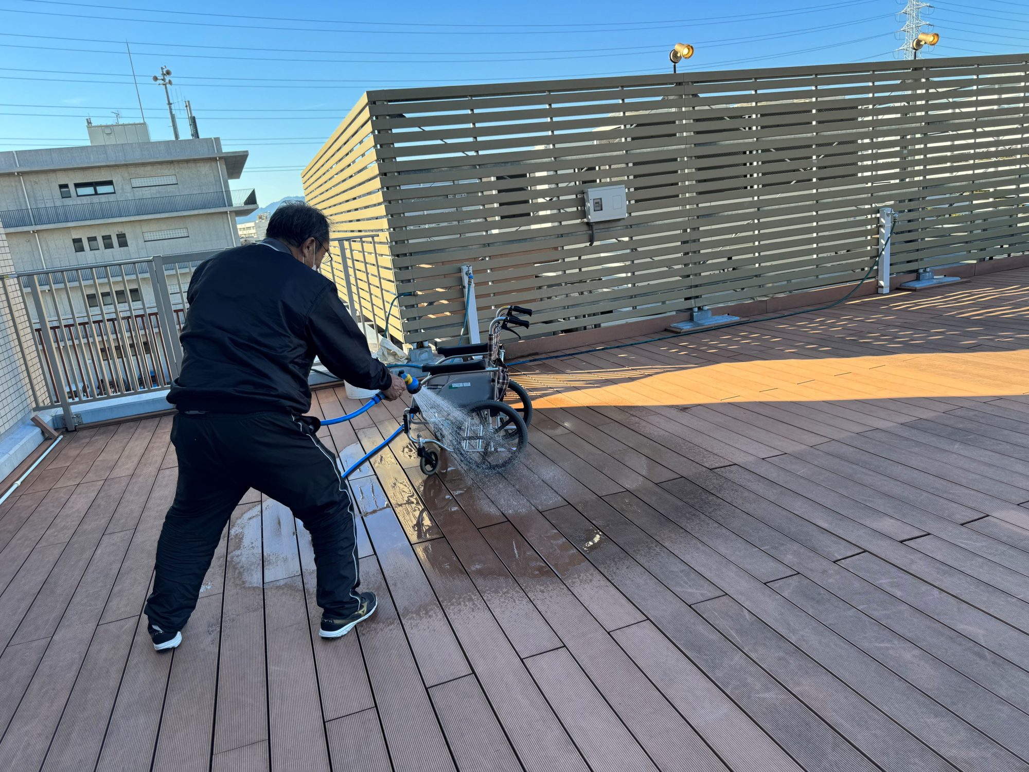 (↑ 車いすを洗浄してくれている現場を押さえました!)