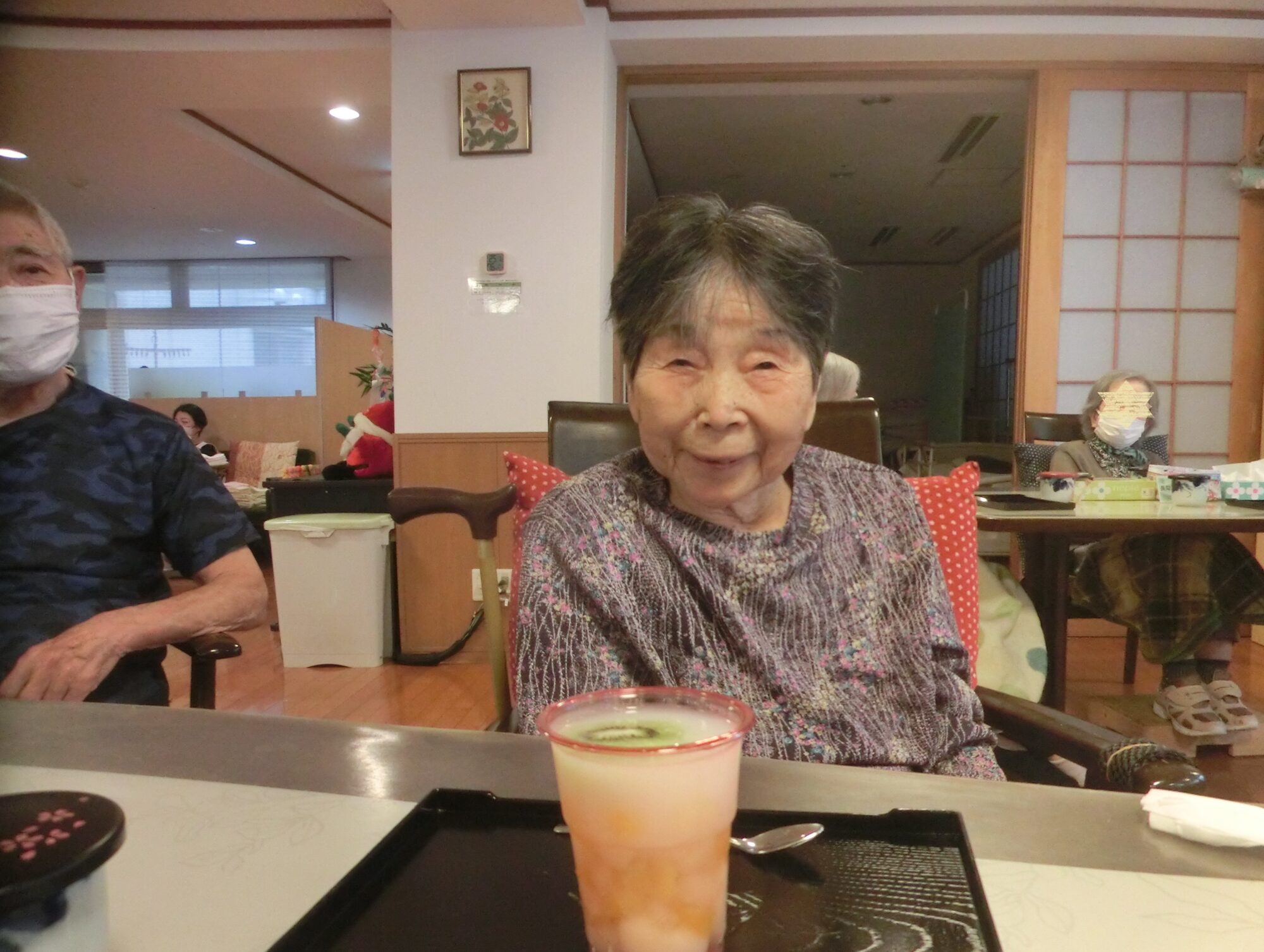 ジュースと一緒にさらさらと召し上がる事ができ、暑い時期には冷たくさっぱりしたものが大人気でした💖。すごい評判がよく「気づいたら全部なくなっていた。いつ食べたんやろう」と笑いながら冗談を言われている方もいらっしゃって、大成功なおやつレクリエーションでした。