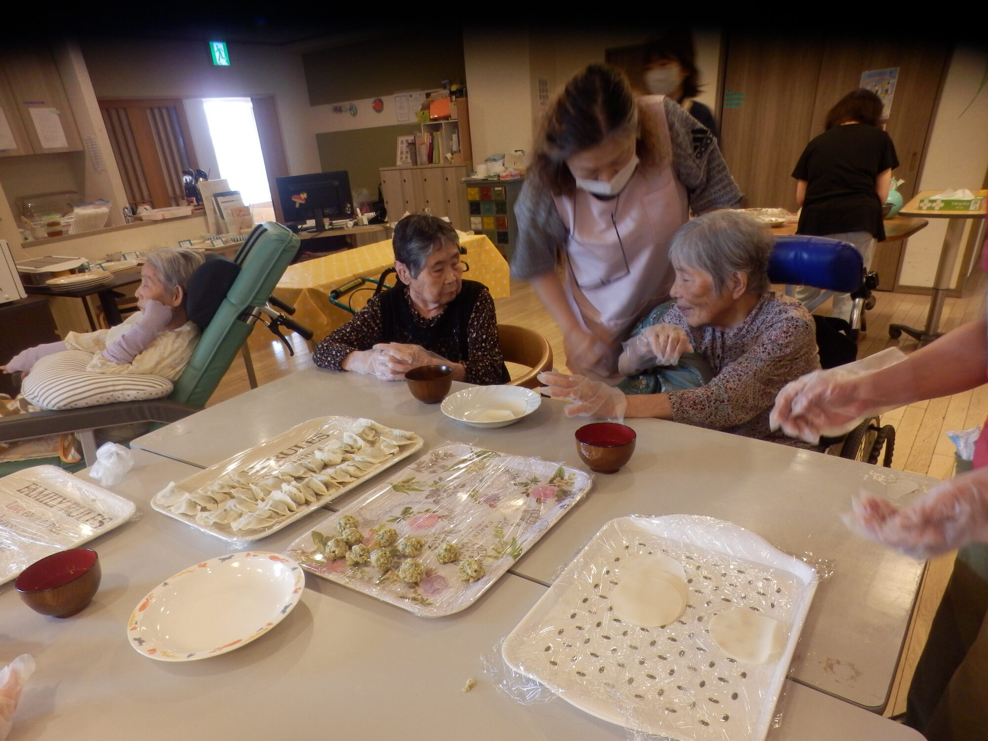 メニューは炒飯・餃子・杏仁豆腐で餃子は入居者様とご一緒に包みました。