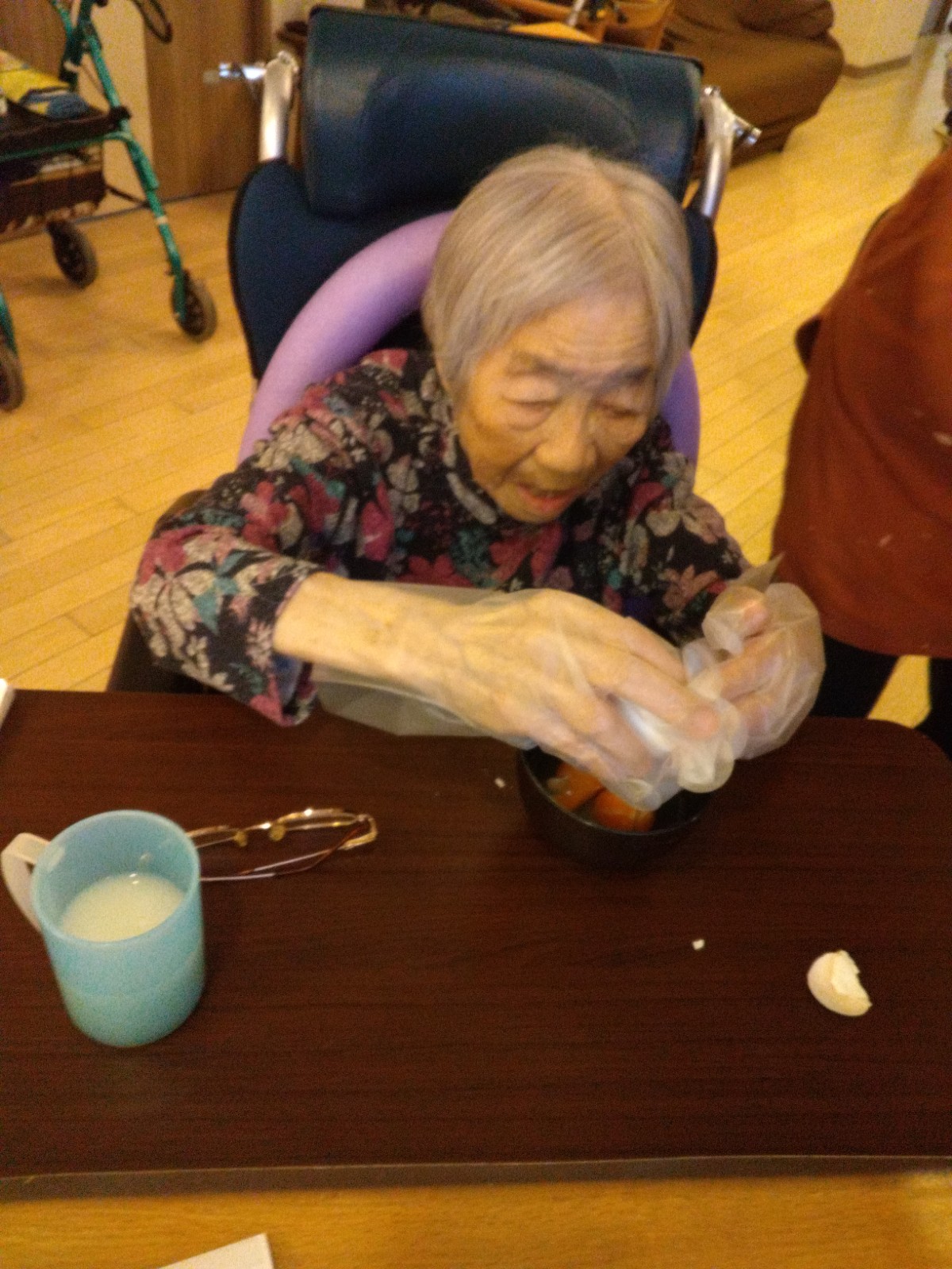 生地が出来上がり、栄養管理士が1つずつあんこをラップに包み用意してくださりそれを皆さんで好きな量を塗られ盛り付けは完成😊
