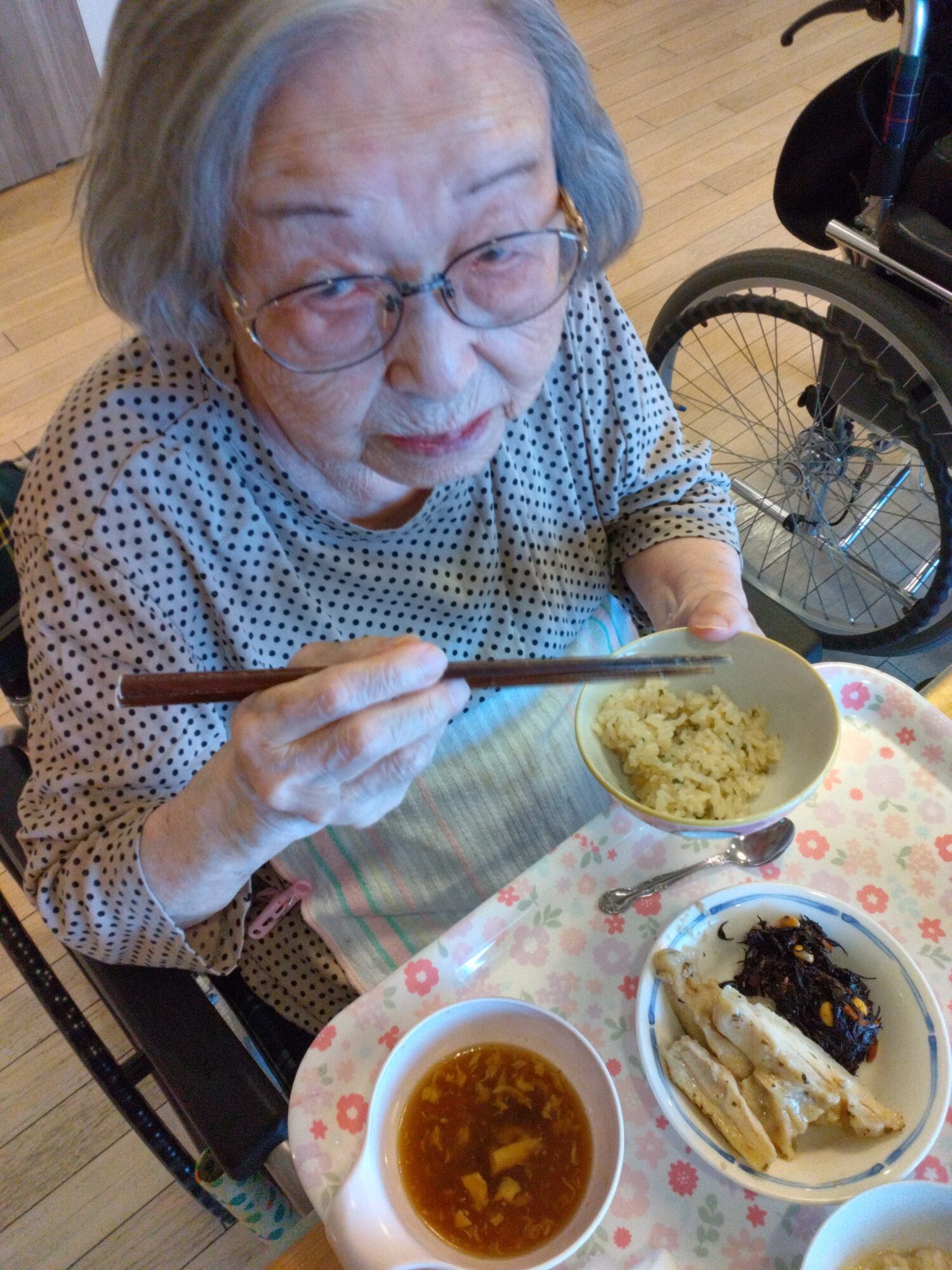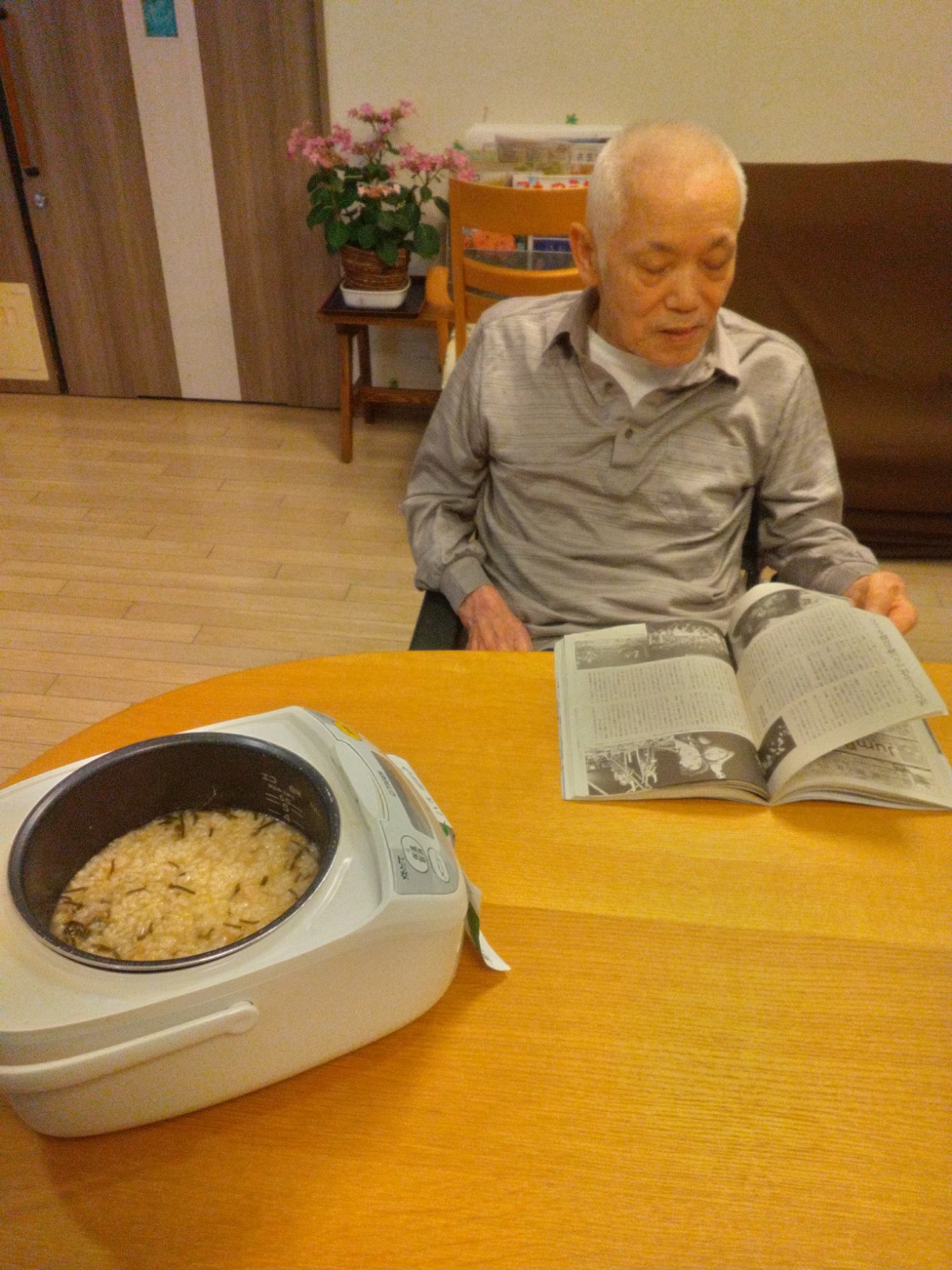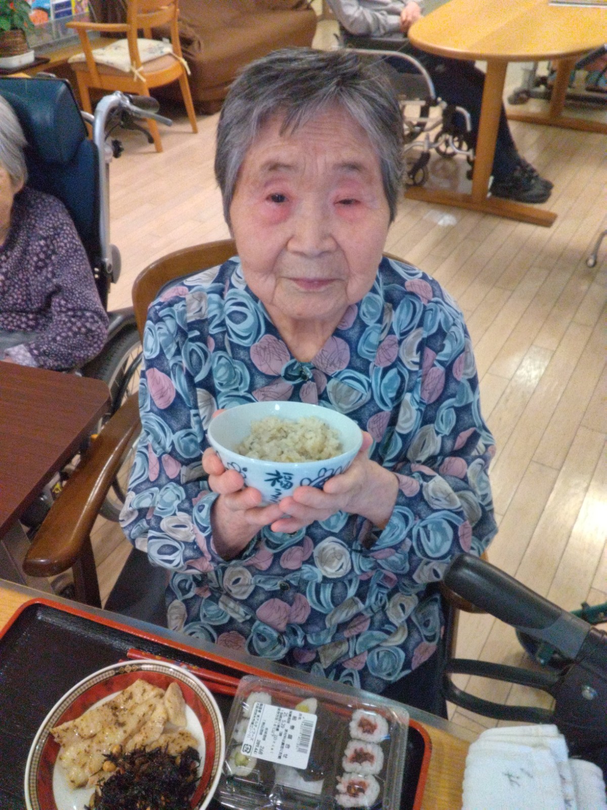 見た目はいつもの白米と違うので「どんな?」と炊飯器を覗き込まれる入居者様もおられいつもと違った表情の一面も見る事ができました!