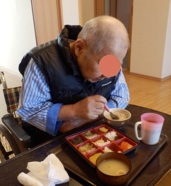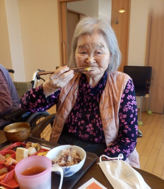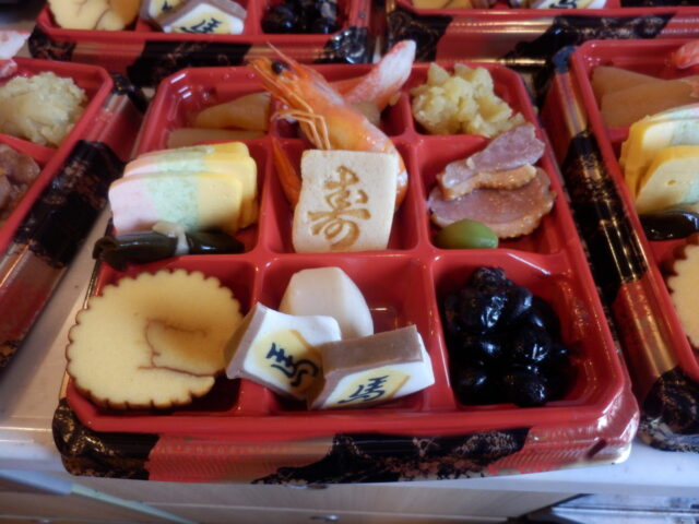 元日の昼食には、正月メニューとしておせち料理を提供しました⏬