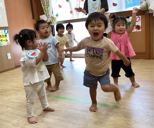 長い夏が終わり、9月末からようやく室内外で運動遊びを楽しんでいる子どもたち。