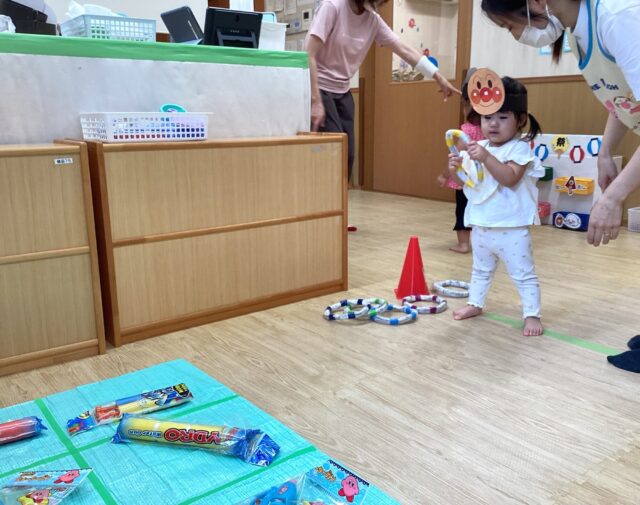 くじびき、ボール・金魚すくい、もぐらたたき、わなげ、ボーリングを楽しみました。