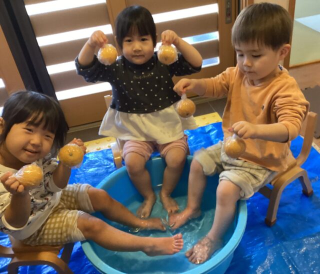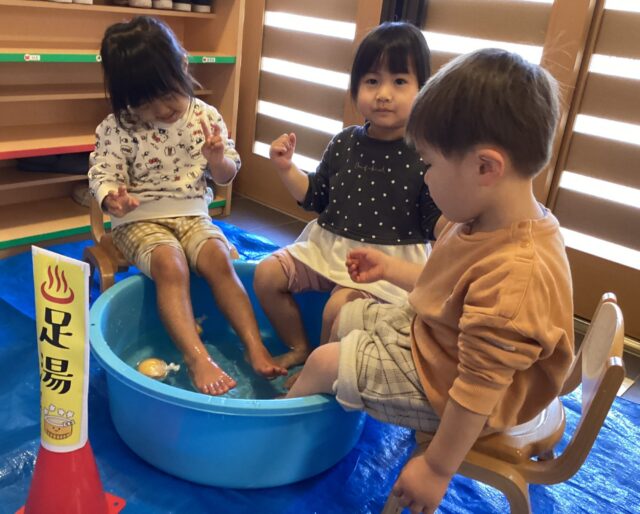 2歳児きりん組で足湯をしました♨