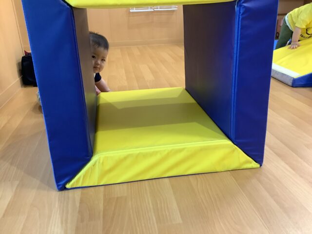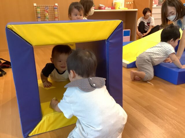 0歳児クラスのお部屋で一緒に遊ぶことにしました。