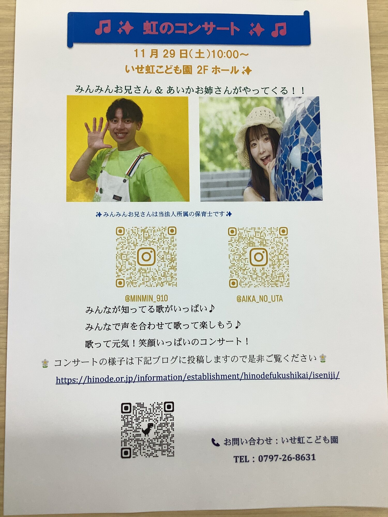 11月29日(土曜日)にうたのお兄さん、お姉さんがきてくれ、コンサートが開催されます!