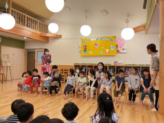 前に出て、みんなの前で座ります!少し緊張している子もいましたが、堂々と座って素敵ですね💓