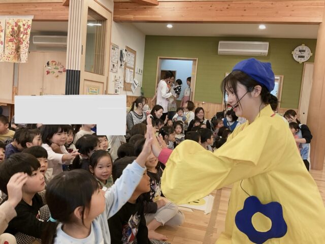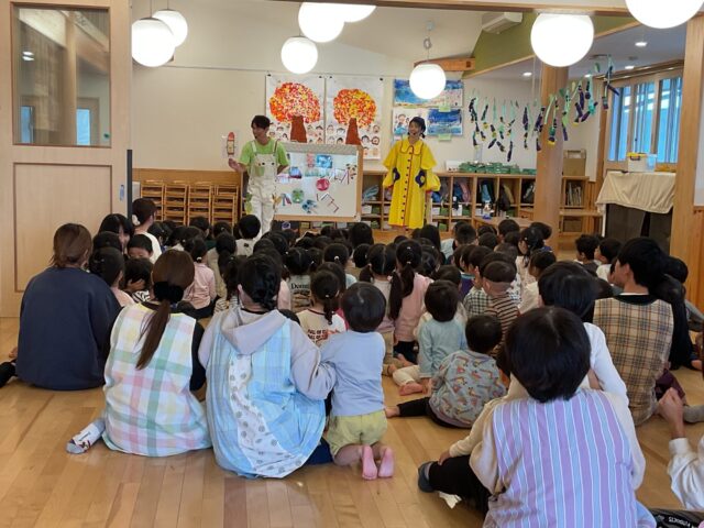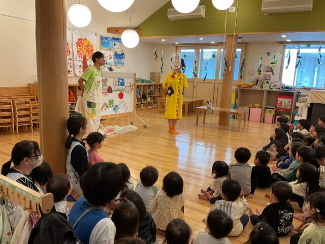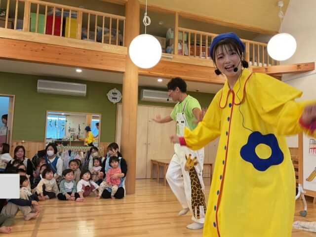 先日、保育園に歌のお兄さんお姉さんのみんみんお兄さんとあいかお姉さんが来てくれてミニコンサートを行いました。