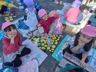たくさん遊んだ後はお待ちかねのお弁当!レジャーシートを好きなところに広げて、お弁当出して「いただきまーす!」