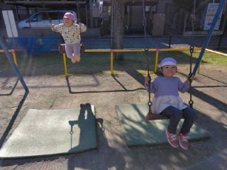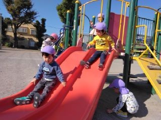 シーソーにブランコ、大きな滑り台などたくさんの遊具!ニコニコで仲良く遊んでいます😊